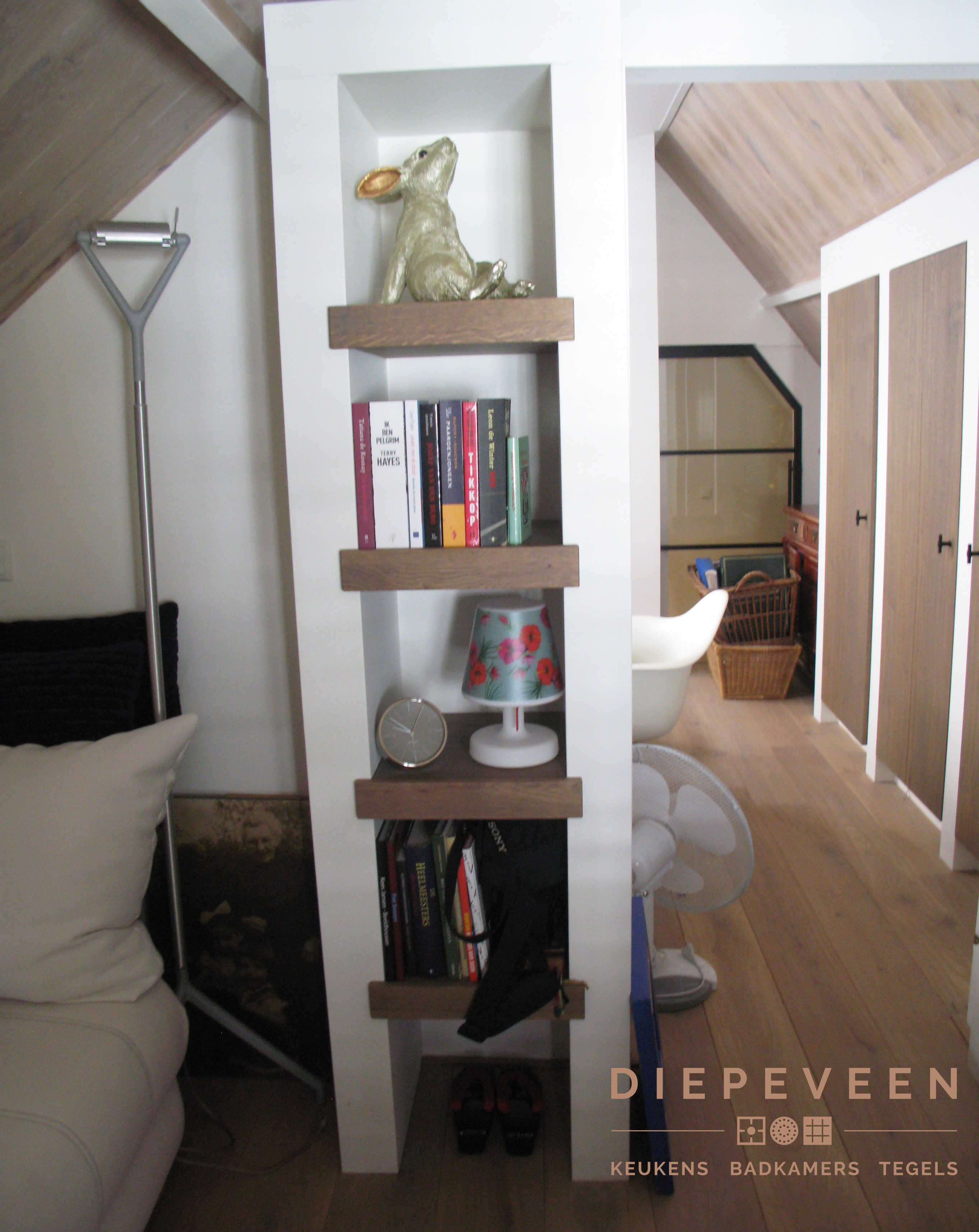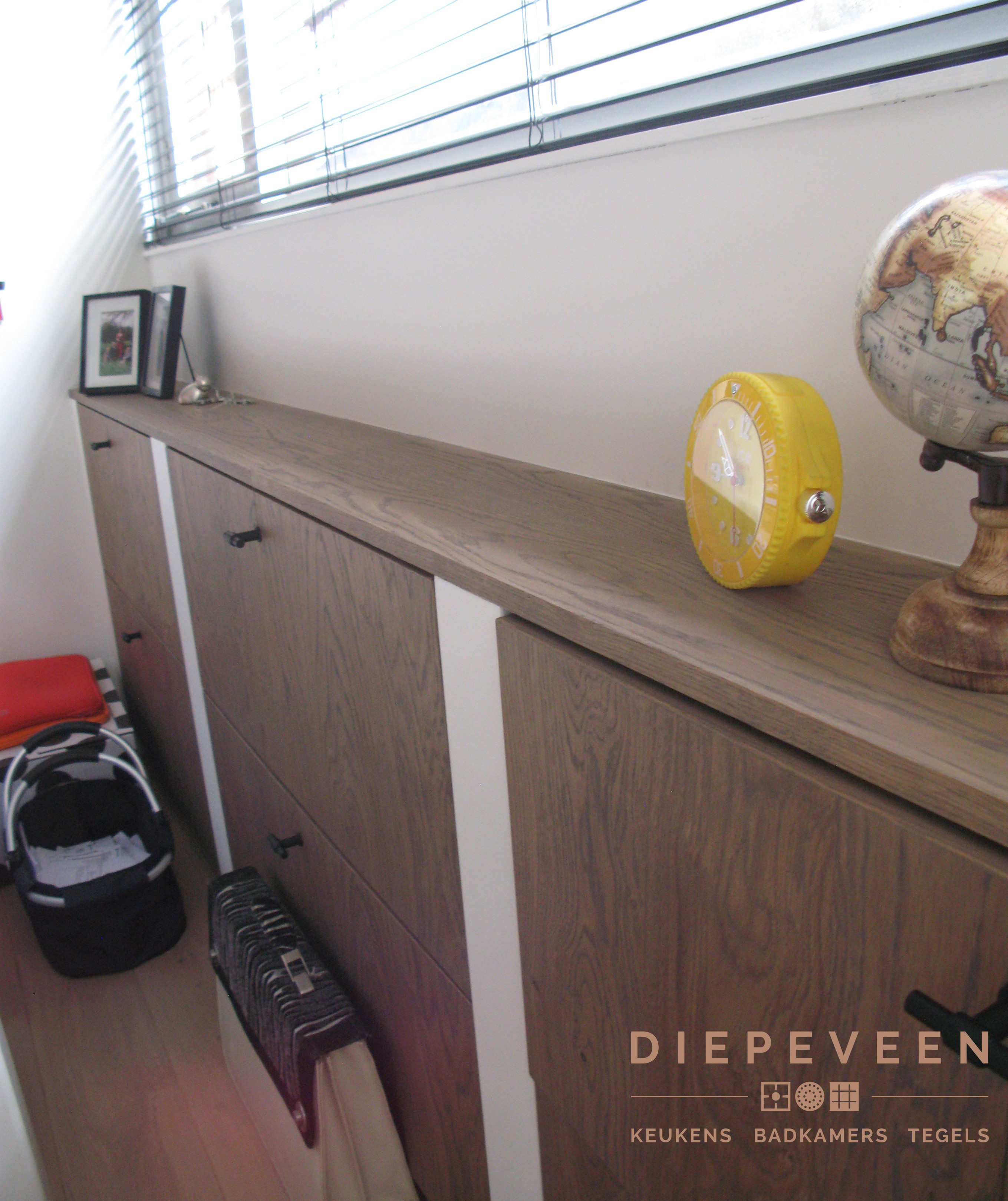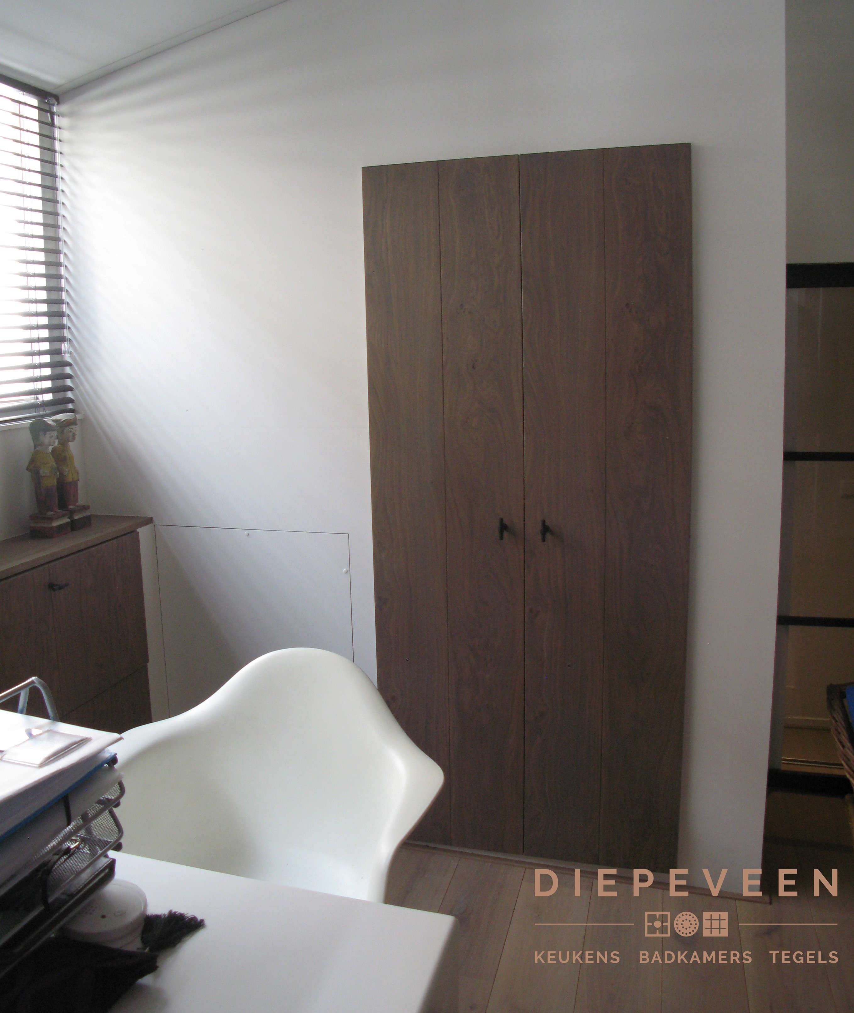 Naast het plaatsen van een keuken en badkamer hebben wij ook de kantoorruimte geplaast. Prachtige combinatie met hout!