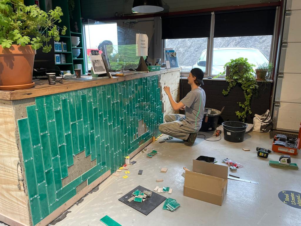 Tijd voor wat nieuws! In ons filiaal in Breda vonden we het hoog tijd om wat nieuwe tegel inspiratie toe te passen op onze balie. Hieronder het resultaat!