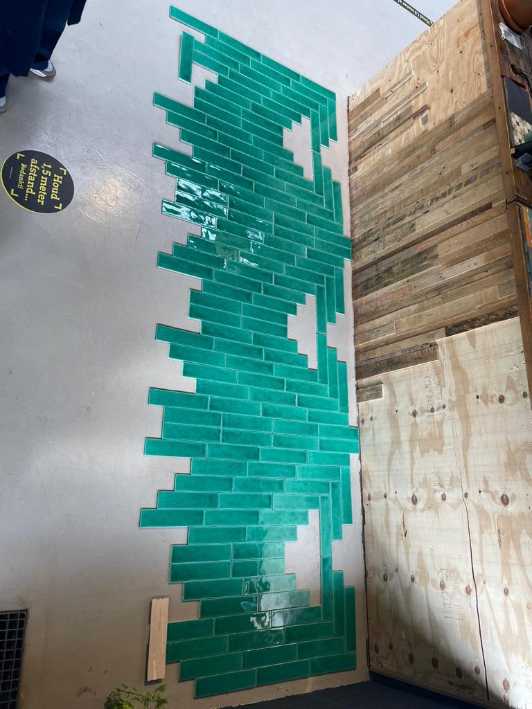 De tegel die we hiervoor hebben gebruikt is de Cabrera Verde T-4. De sprekende groene tegel is een echte eyecatcher en heeft een afmeting van 7.5 bij 30 cm. De Cabrera Verde T-4 is een kleurrijke wandtegel die met de hand wordt gemaakt in Spanje. Deze kun je combineren met andere tegels zoals de Azulejos Metalizado.