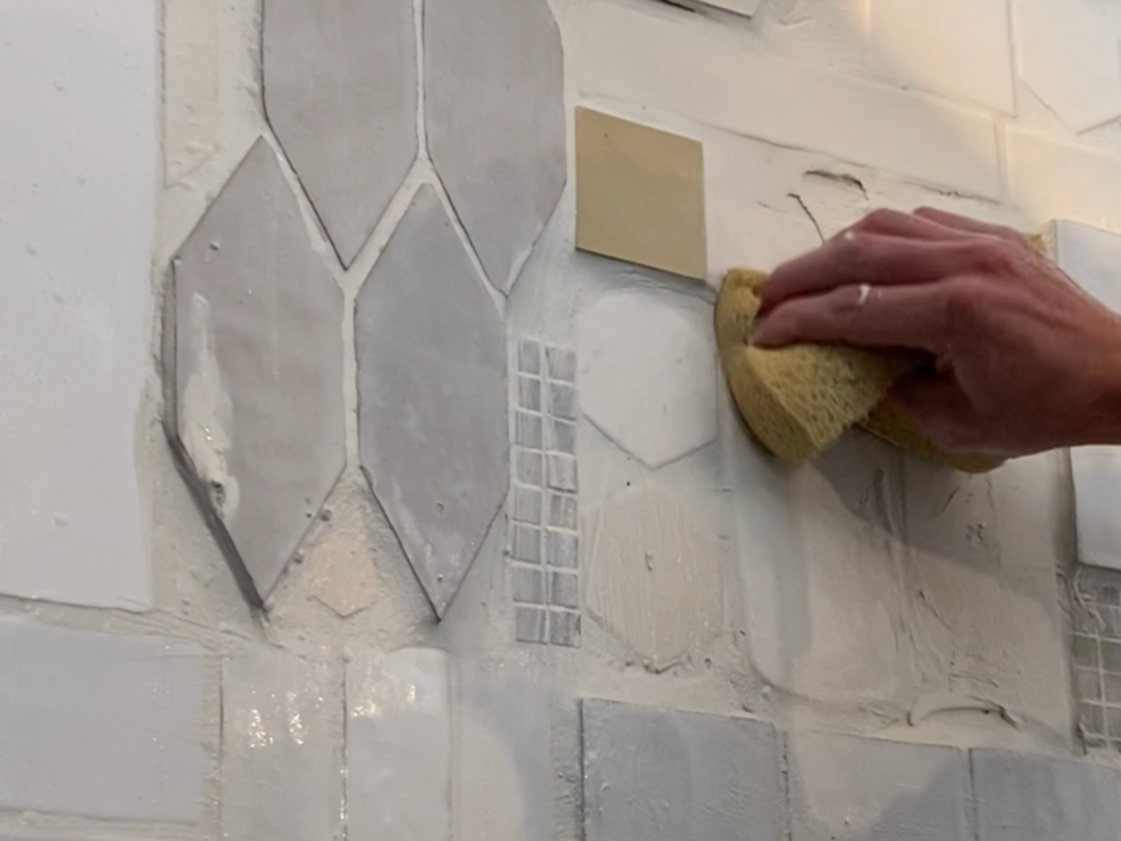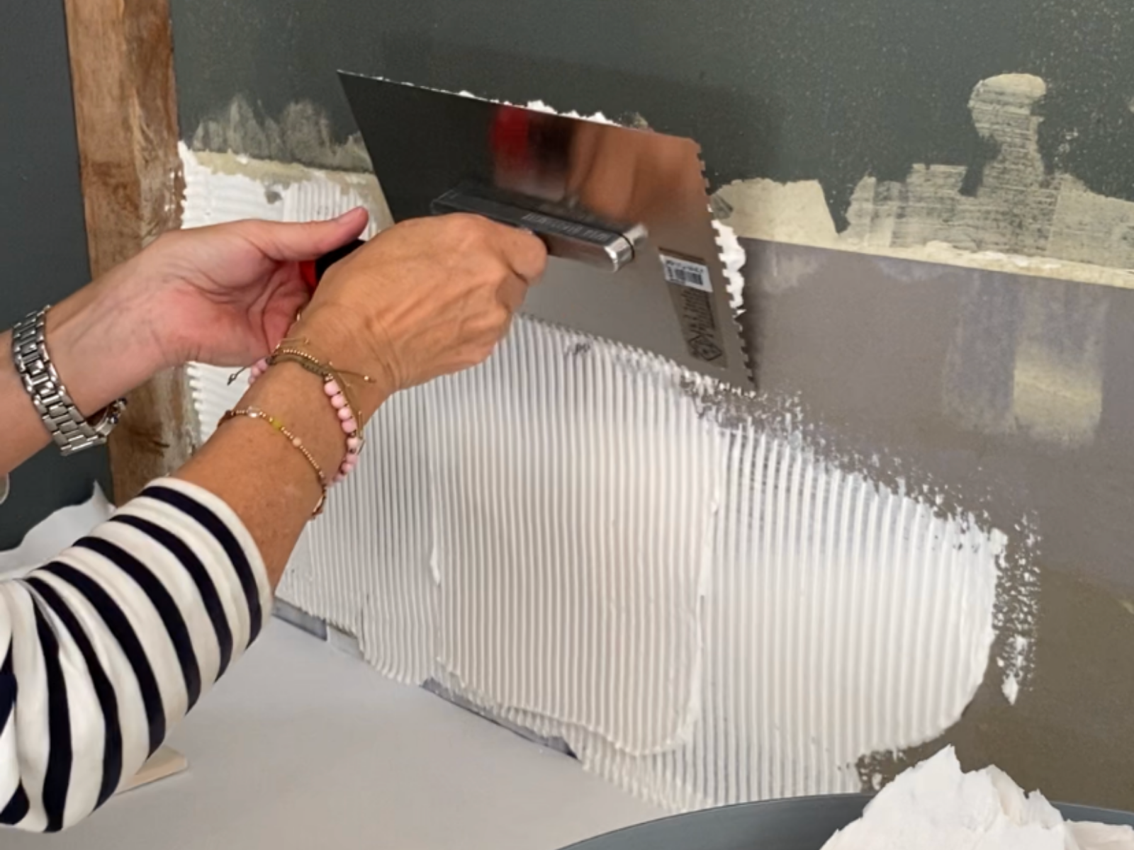 Na lang puzzelen en lijmen is het gelukt en zijn we bij het allerlaatste tegeltje aangekomen. Het effect is super tof! Laat de lijm een dag drogen, zodat de tegels goed vastzitten en klaar voor de volgende stap: voegen! Kies een voegkleur die bij je project past. Voeg heb je in alle kleuren van de regenboog. Wil je juist uitpakken met een kleur of naturel blijven met dezelfde kleur als de tegels? Wij hebben gekozen voor een voeg die de tegels extra doet opvallen. Het kan best een uitdaging zijn met alle verschillende soorten tegels. Sommige tegels steken uit, sommige zijn veel dikker… Maar als je eenmaal begonnen bent zie je meteen resultaat!