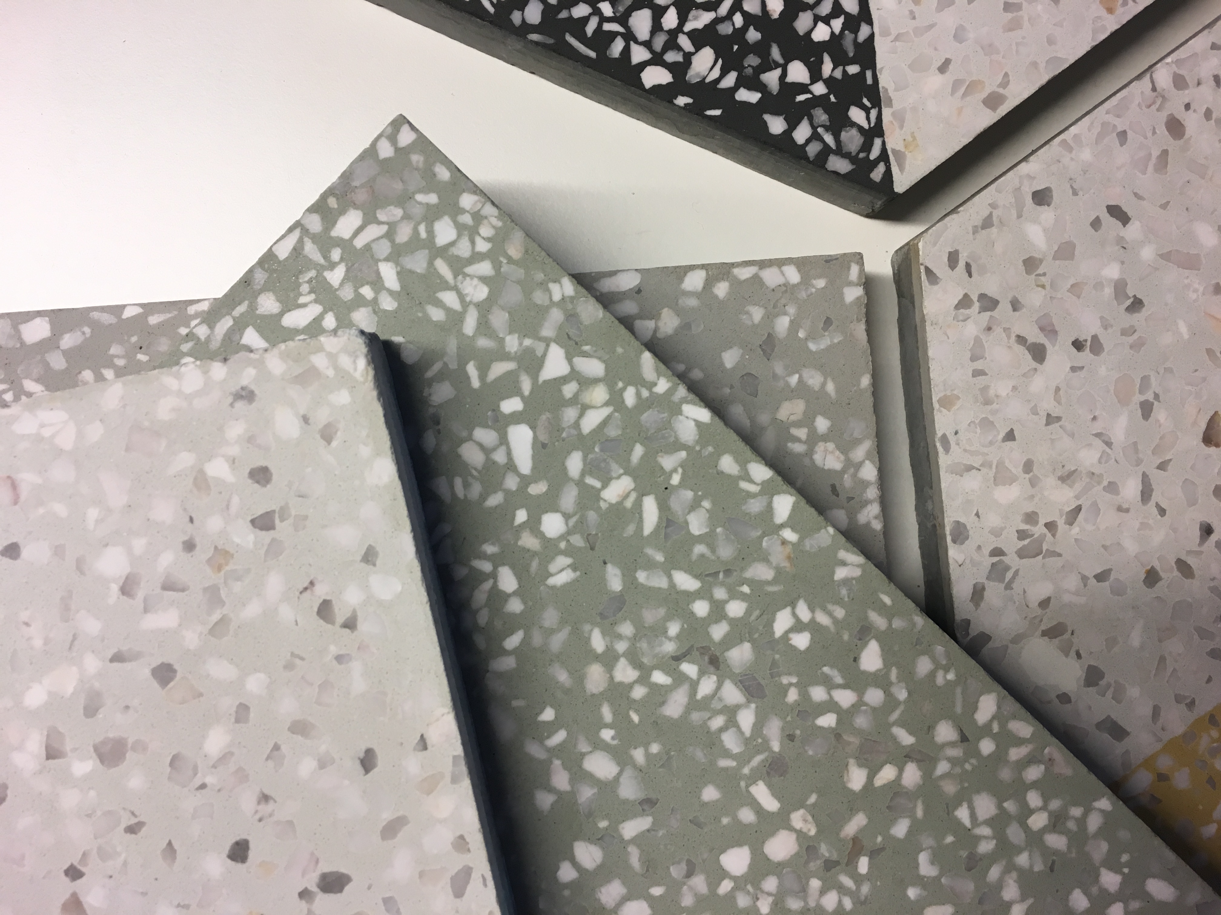 Terrazzo is een hele oude techniek, ontstaan door het gebruik van restjes. Bij het bouwen van kerken werden restmaterialen marmer of graniet bij het beton gestort. Door het vele verkeer (geloop) over deze vloeren werd het vervolgens gepolijst waardoor de stukjes marmer of graniet zichtbaar werden. Men vond dit zo mooi dat er ook andere producten van gemaakt werden.