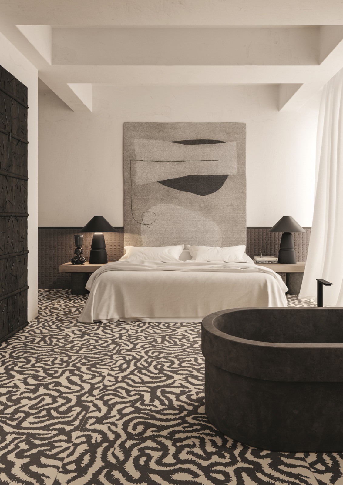 Stel je een stijlvol Parijs appartement voor, vol karakter en kunst. Of een modern hotel waar Afrikaanse invloeden en geometrie samenkomen. Dat is de wereld van Nok – een bijzondere tegelserie van 41zero42, geboren uit de behoefte om rauwe natuur en verfijnd design met elkaar te verbinden.