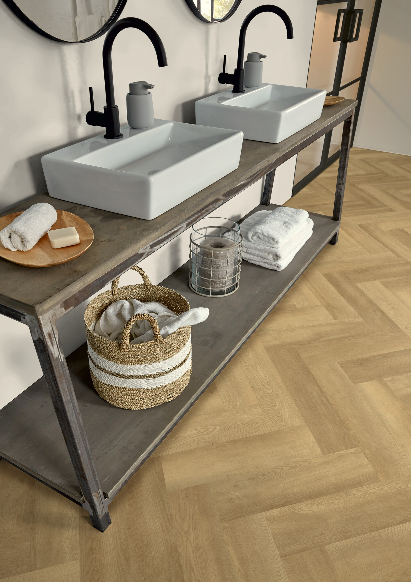 40 decors, 9 formaten, 11 verschillende oppervlaktestructuren. De collectie kenmerkt zich door opvallende houtlooks, bijzondere leisteen- en betonlooks en een terrazzo design met een minerale look. Extra aandacht voor de decor synchrone reliëfdruk in de oppervlakken. Het reliëf volgt exact het verloop van de decoratieve nerf. Hierdoor ontstaat een look die nauwelijks te onderscheiden is van echt hout of leisteen. Het resultaat zijn onderhoudsvriendelijke vloeren van een opmerkelijke kwaliteit.