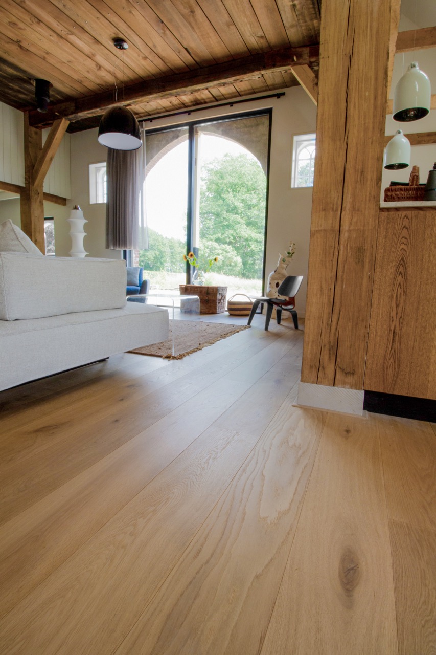 In het oosten van het land is de woning van dit prachtige project gevestigd. In deze renoveerde boerderij vallen de vele houten accenten direct op. Zo springen de mooie houten balken direct in het oog. Ook is er gekozen voor een sprekende houten keuken met kookeiland. De rustieke houten vloer van Cinzento Custom Made® past hier perfect bij en geeft de woning een stijlvol geheel. Hout haalt de natuur in huis en dat is bij deze woning ook duidelijk gelukt.
