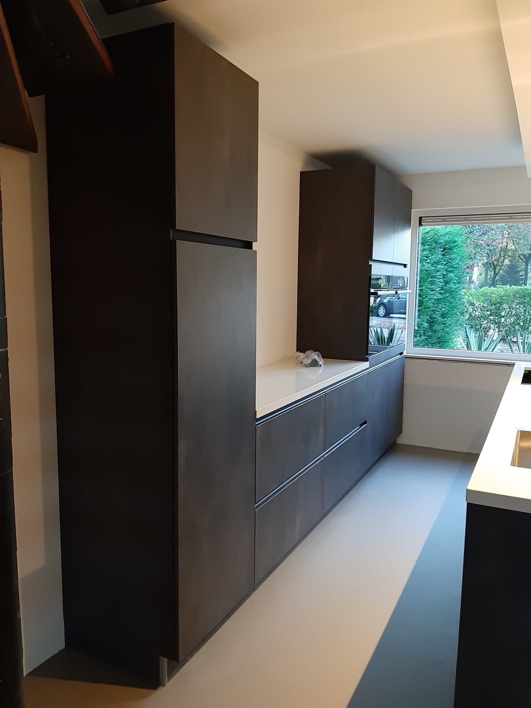De cemento word in een 2- lagensysteem aangebracht door onze eigen vakbekwame mensen.{applicatie dagen 4-5} De uitstraling van deze vloer bepaalt u samen met onze applicateurs, en wij houden u op de hoogte elke dag met foto en filmateriaal. Zodat u weet wat wij in uw woning doen.