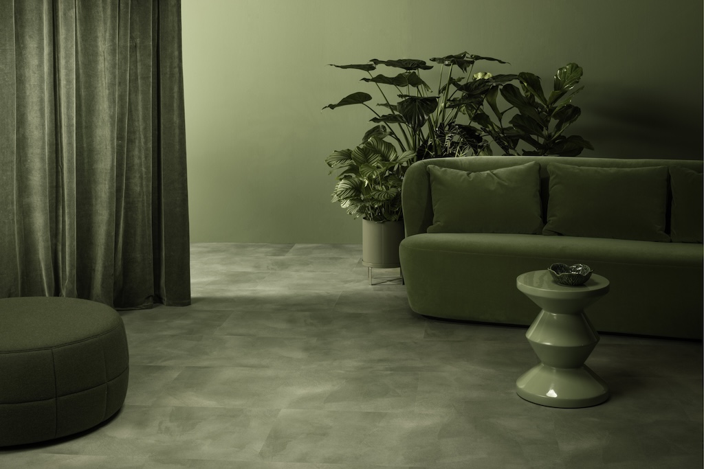Om dit gevoel te versterken, introduceert Quick-Step een zachte, weidegroene PVC-vloer die perfect aansluit bij de opkomende monochrome trend en de heropleving van natuurlijke tinten. Deze vloer helpt je huis te transformeren tot een serene, kalmerende leefomgeving.