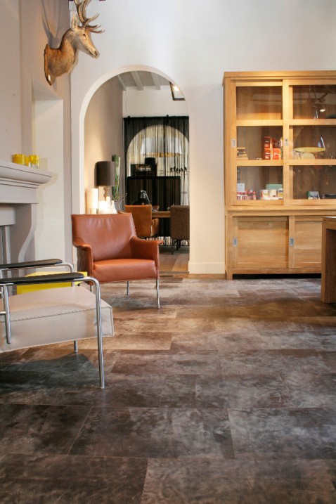 Voor een verrassend en uniek interieur combineert Alphenberg de lederen producten met andere materialen zoals beton en hout. Alphenberg werkt daarvoor samen met onder meer Dofine, eigenzinnige interieurs, en Studio DL, houten vloeren. Rob Koemans: 'Dofine heeft een uitgebreide collectie materialen, bijvoorbeeld betonlooks, voor wandafwerkingen. Met Studio DL combineren we een leren vloer met houten delen. We laten dat zien in onze nieuwe showroom in Het Arsenaal in Naarden.'