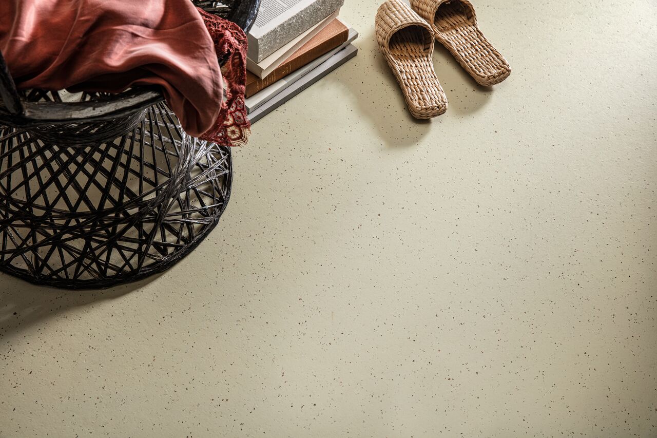Het effect van een betonnen- of gietvloer maar de voordelen van vinyl. Een goede sfeermaker voor wie een industrieel stoer tintje wil geven aan zijn huis.