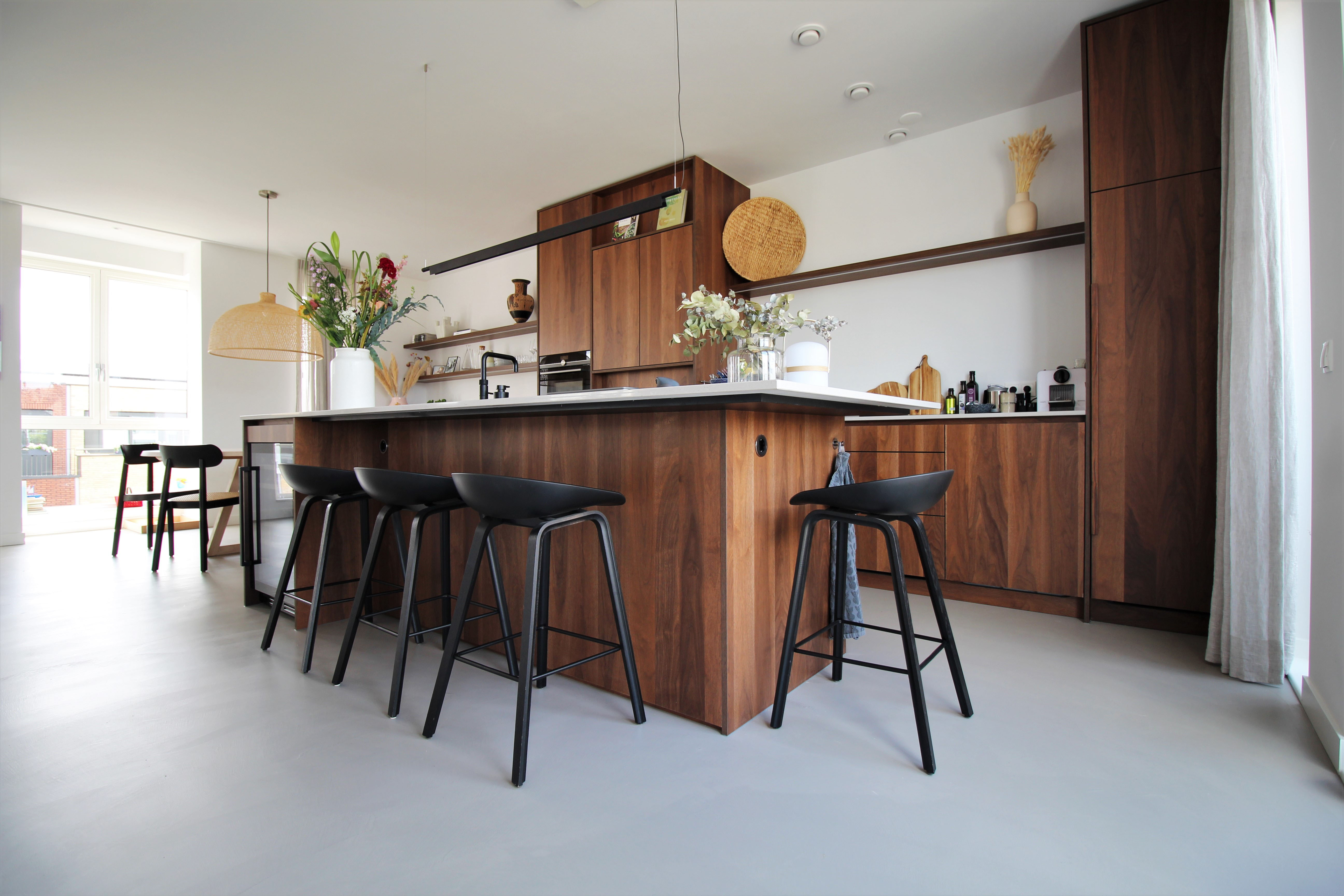 Japandi gaat om de eenvoud en functionaliteit van je interieur. Met een microcementvloer of woonbeton komt je woning samen, naadloze luxe die onderhoudsvriendelijk is.
