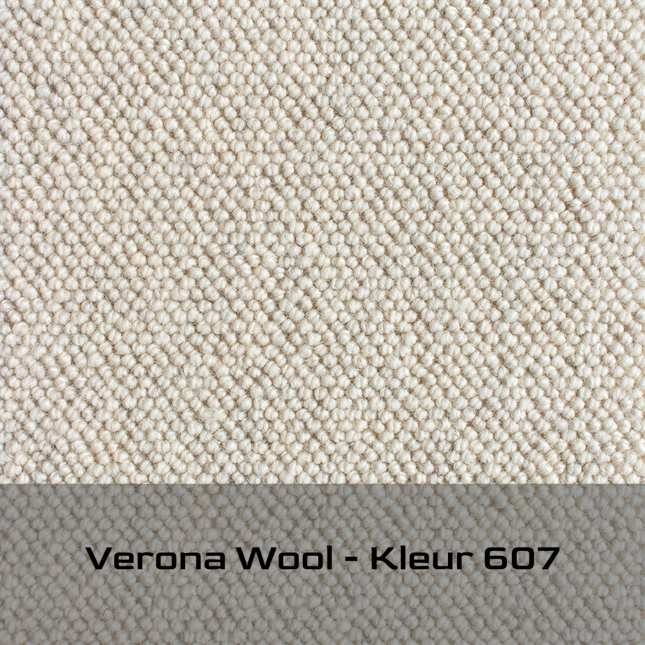 Een vierde wollen tapijtkwaliteit omdat het vele voordelen kent. Het is duurzaam en daarbij is wol een natuurlijke hernieuwbare grondstof die 100% biologisch afbreekbaar is. Wol is veerkrachtig en goed bestand tegen slijtage. Verona Wool is een natuurlijk wollen tapijtkwaliteit vervaardigd van ‘Woolmark®‘ hoogwaardige 100% New Zealands scheerwol! Gekenmerkt door fraaie fijne poollussen in een licht gemêleerd karakter. De Verona Wool onderscheidt zich door een elegant diagonale structuur, wat als kamerbreed tapijt zorgt voor een ruimtelijk effect.