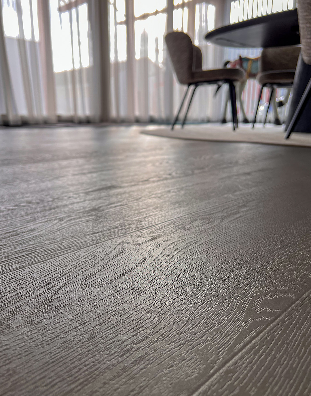 De vloer voelt niet alleen authentiek aan door de natural look en feel, het oogt ook daadwerkelijk als echt hout door de nerven en knoesten die er voelbaar en zichtbaar in zijn verwerkt