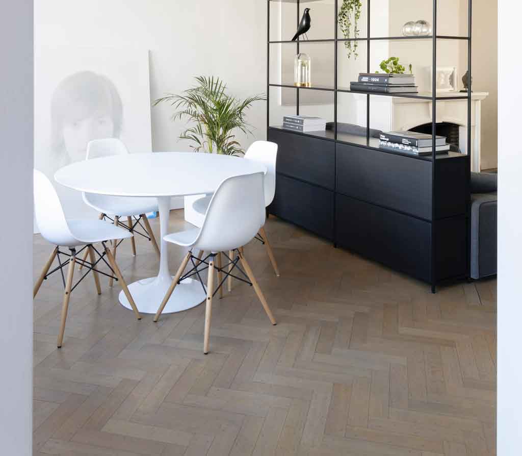 Een visgraat vloer is helemaal van nu. Je kunt deze vloeren kopen in iedere houtsoort die je maar wenst. Ook de breedte van de planken is helemaal naar jouw wensen aan te passen. Het leggen van een visgraat vloer is wel een klusje voor de vakman. Maar dan heb je ook wat: een schitterende tijdloze vloer in de meest mooie houtsoorten. Daar heb je jarenlang plezier van!