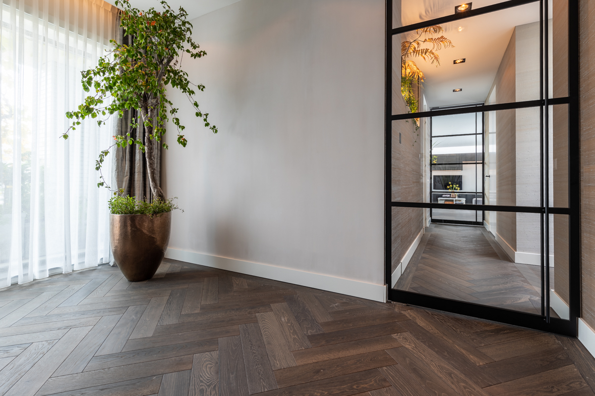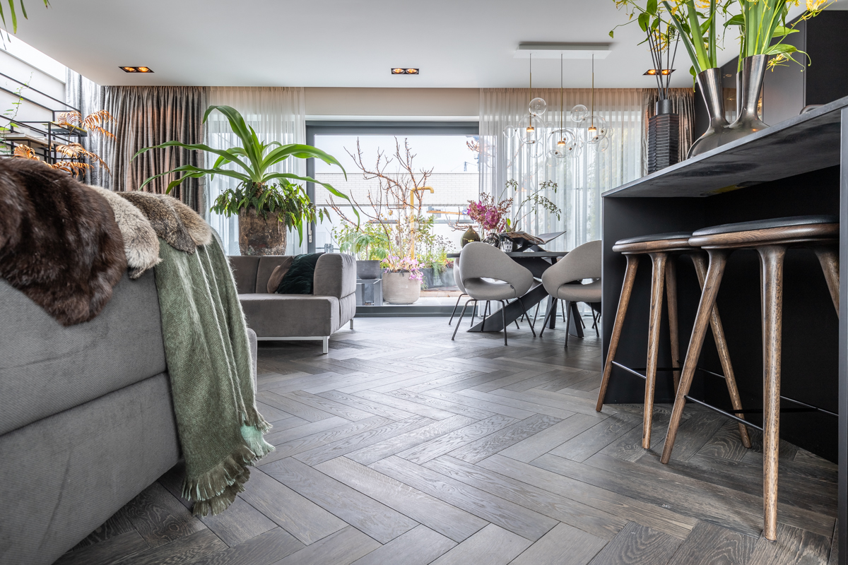 Deze prachtige visgraat vloer hebben wij mogelijk gemaakt voor klanten die een nieuwbouw appartement hebben betrokken. Zij waren op zoek naar een donkere visgraat vloer die perfect aansloot bij hun moodboard en inrichtingsplan.