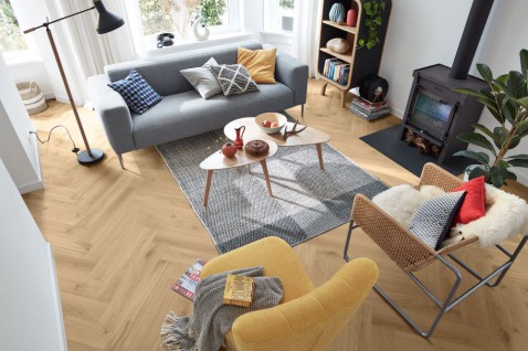 De PS 500 visgraatparketvloer komt zowel in een landelijke als in een moderne woning perfect tot zijn recht. De collectie bestaat uit 8 natuurgeoliede en 7 mat verniste eiken vloeren evenals 1 notelaar in een mat verniste uitvoering. Bovendien is het mogelijk om de 8 natuurgeoliede visgraatvloeren in de identieke kleur te combineren met de royale PD400 parketplanken (2200 x 180mm) evenals de mat verniste visgraatvloeren te combineren met de elegante PS 300 parketvloeren (1187 x 142mm).