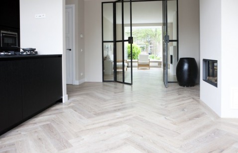 De houten tegelvloer van Uikpes kan ook in combinatie met vloerverwarming worden gelegd.