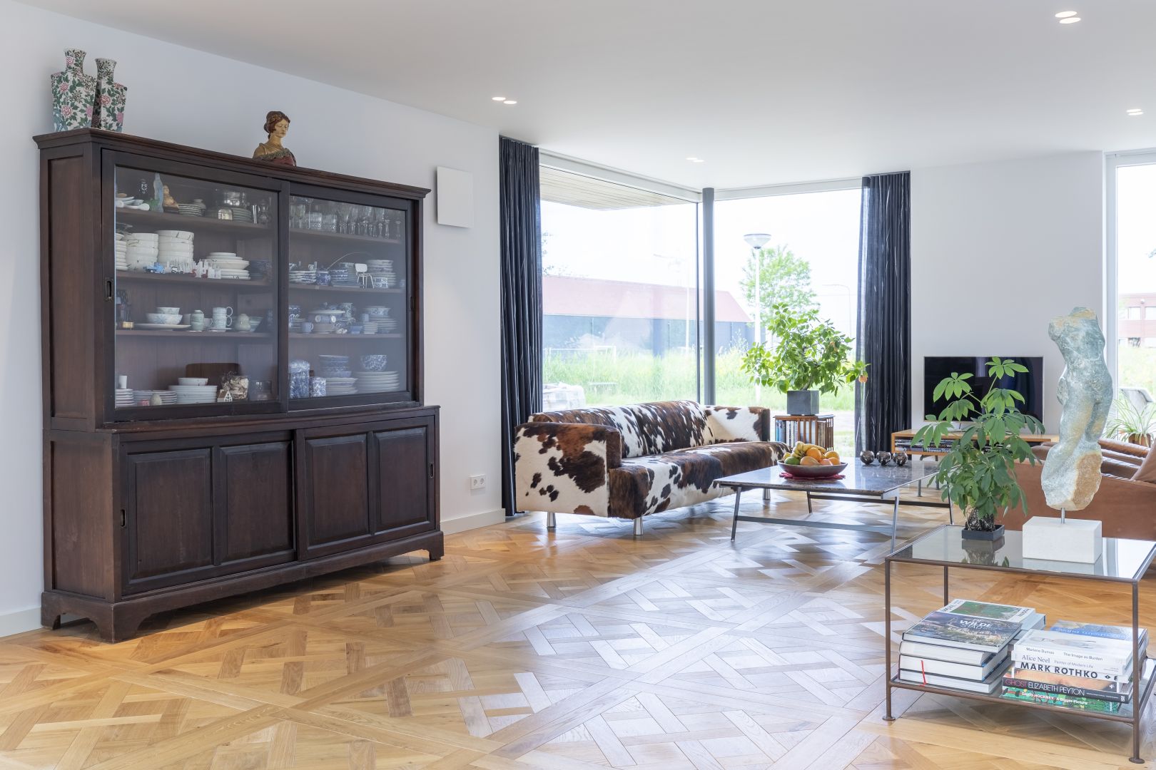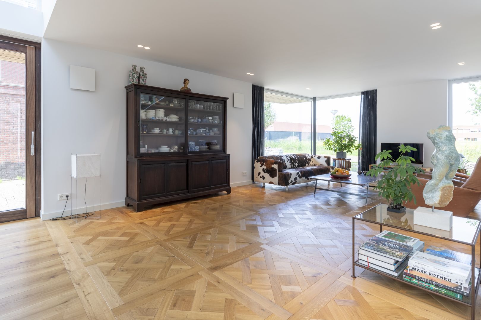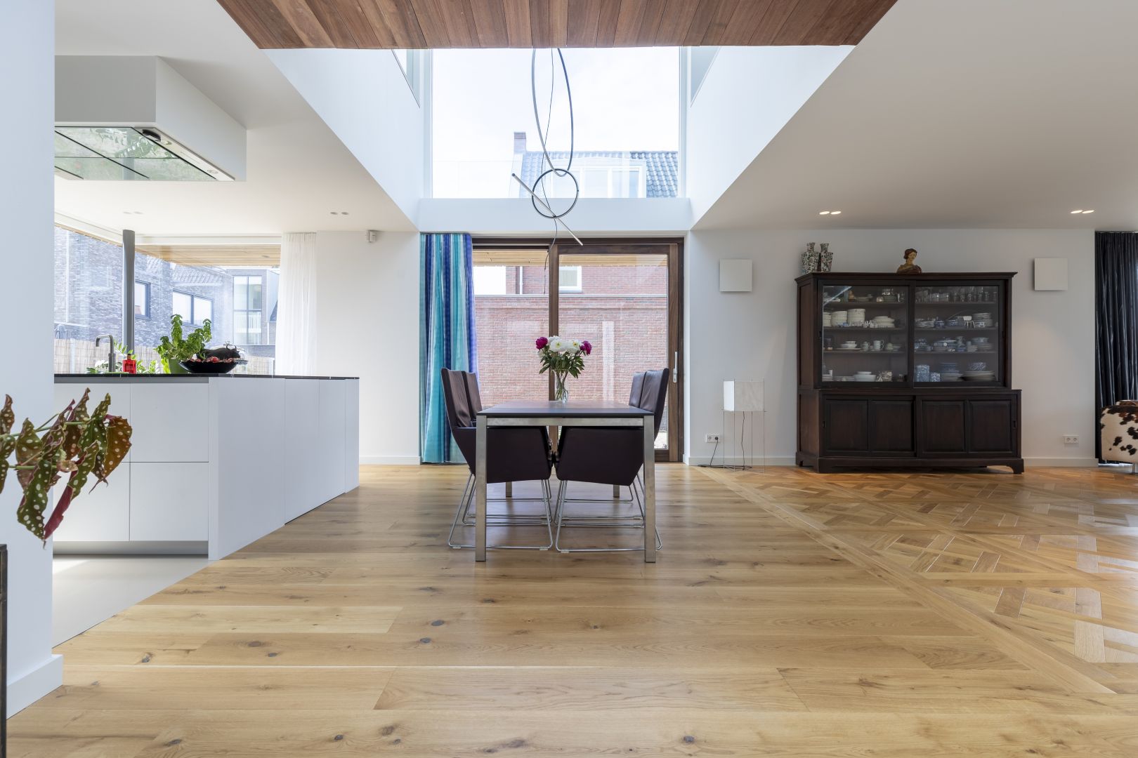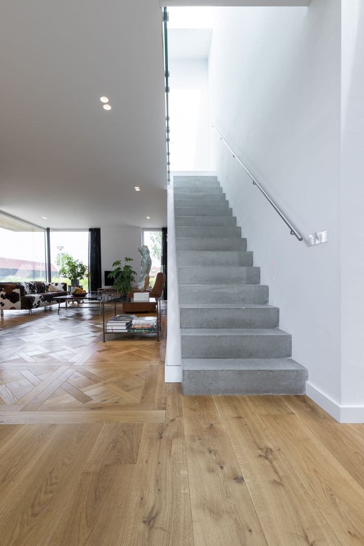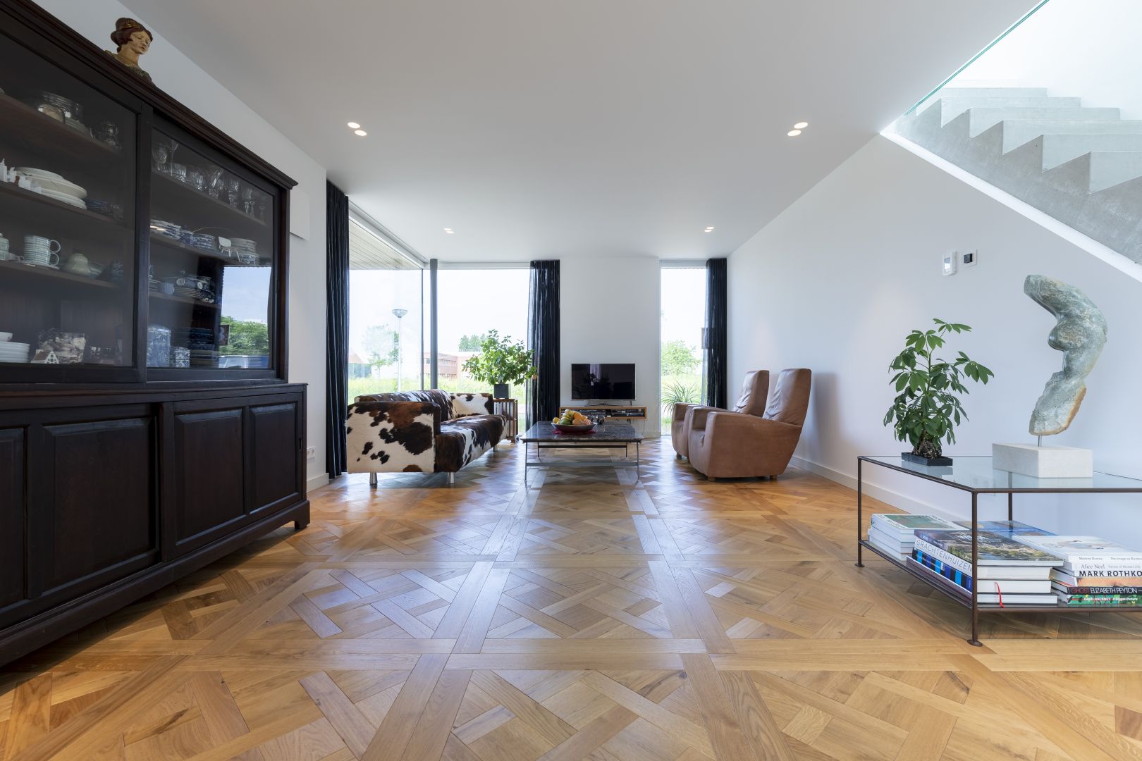 Dit prachtige patroon is bij uitstek geschikt bij de renovatie van oudere panden, echter is er in deze setting voor gekozen om de vloer juíst in de woonkamer van een nieuwbouw villa te plaatsen.