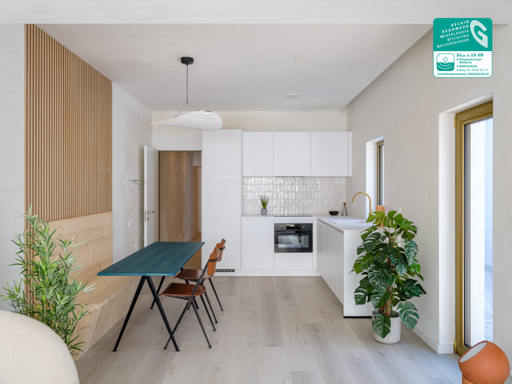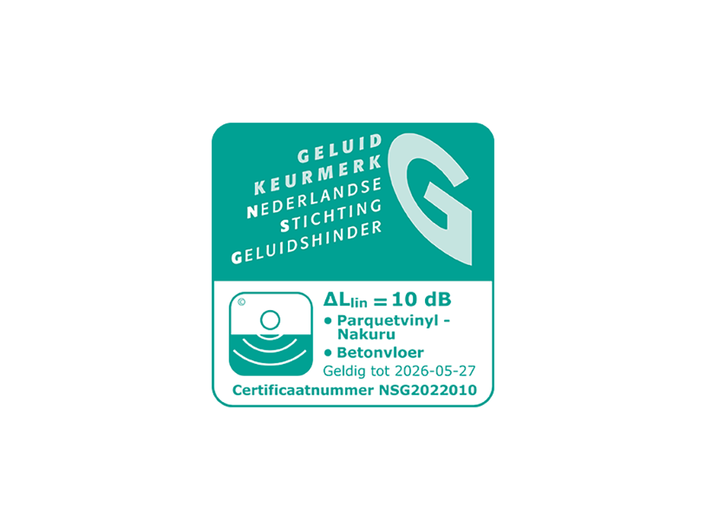 Nakuru werd uitvoerig getest en goedgekeurd door testbureaus over de hele wereld, en kwam als winnaar uit de bus. De akoestische vloeren bestaan namelijk uit meerdere lagen materiaal die elk verschillende geluidsfrequenties blokkeren. Daarmee halen we 21dB geluidsabsorptie, wat voor zwevende vloeren een uitzondering in de Europese markt is! Verder geniet je van een vermindering van transmissiegeluid van 10 dB ?Llin én een geluidsabsorptie van 81% in de ruimte zelf. Ook werd Nakuru als eerste en enige spc-vloer bekroond met het strenge NSG-Geluidkeurmerk. Deze vloeren zijn dus volgens de Nederlandse Stichting Geluidshinder uitermate geschikt voor appartementen en rijhuizen, de vloer dempt namelijk het geluid tussen twee woningen of appartementen.
