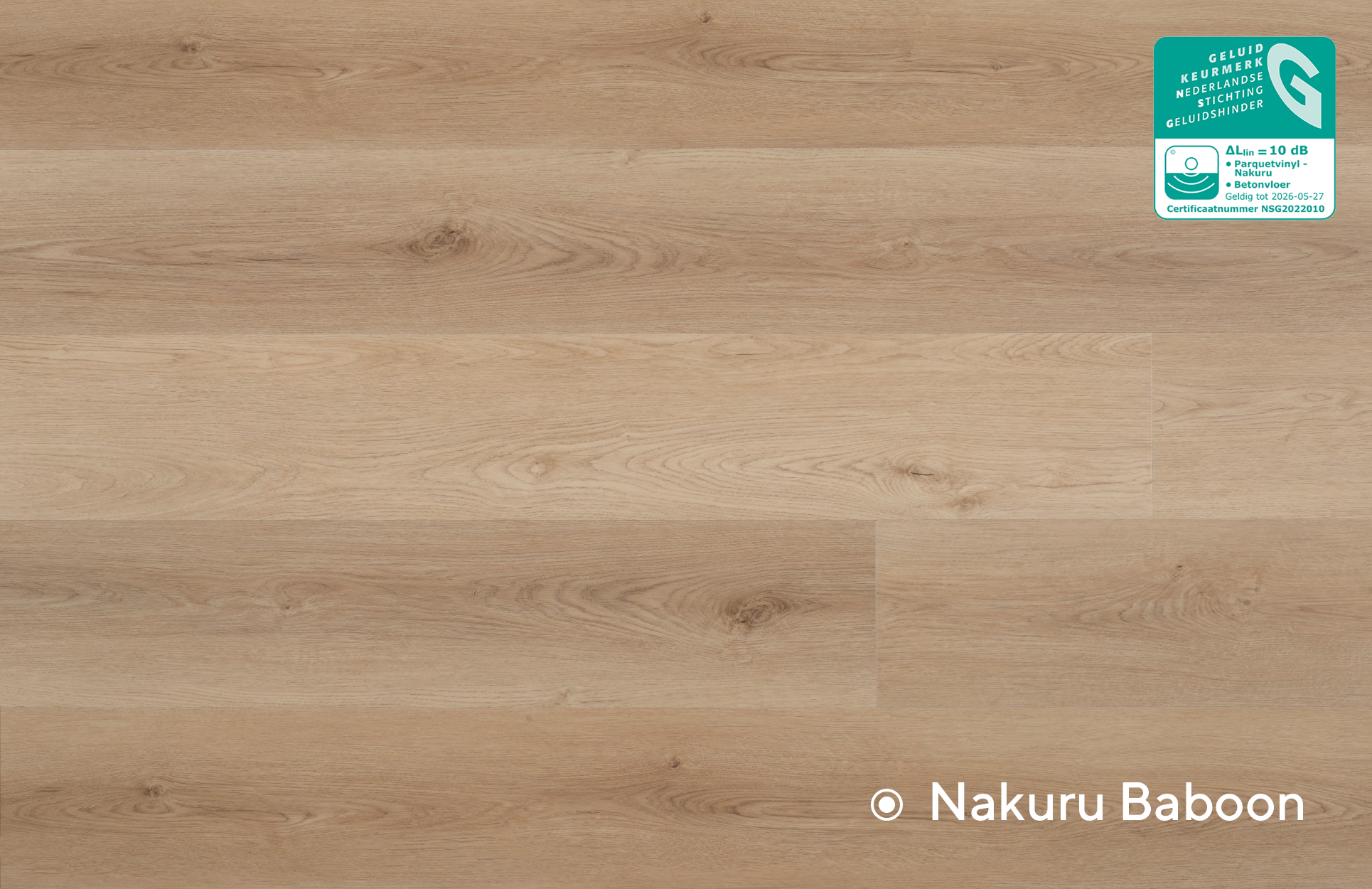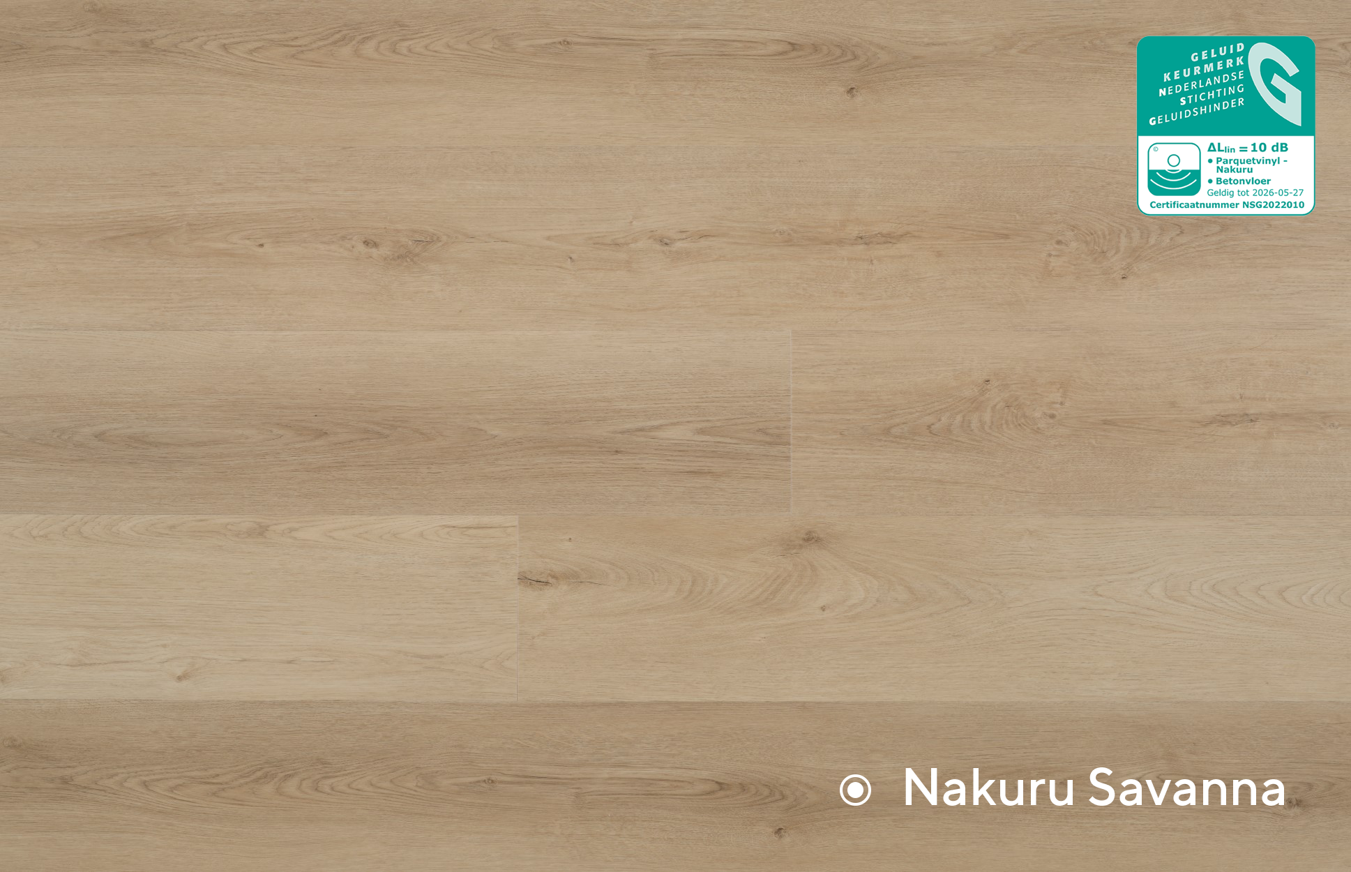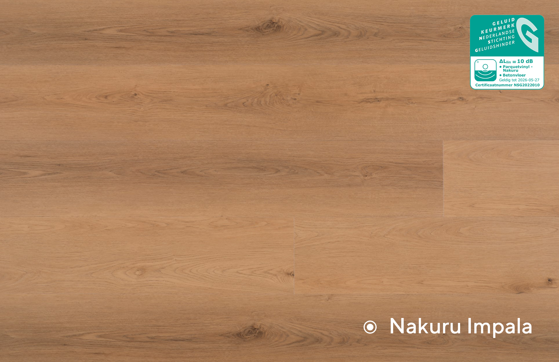 Met de Nakuru collectie van Parquetvinyl geniet je van een vermindering van het transmissiegeluid van 10 dB ?Llin, deze pvc-vloer is dus perfect geschikt voor appartementen en rijwoningen