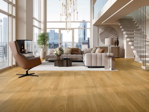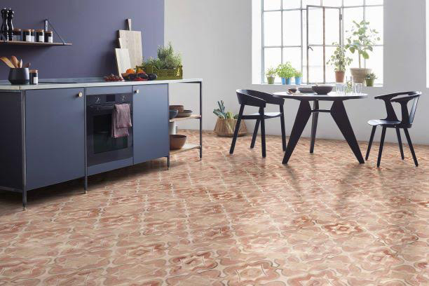 elastische vloerbekleding Modular ONE maakt deel uit van de Edition. Terwijl ‘Essen’ indruk maakt met zijn lineaire structuren in roestbruin en staalgrijs, zorgt het model 'Athens' met de look van wit marmer voor moderniteit in de leefruimte.