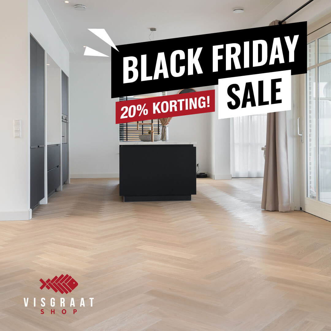 Elk jaar eind november vindt de grootste kortingsactie van het jaar plaats: Black Friday. Het hele weekend strooit Visgraatshop met voordeel. Alle houten visgraatvloeren uit de collectie zijn dan extra aantrekkelijk geprijsd. En niet onbelangrijk: hun Black Friday actie geldt ook voor plinten, banden, vloerlijm en andere toebehoren.