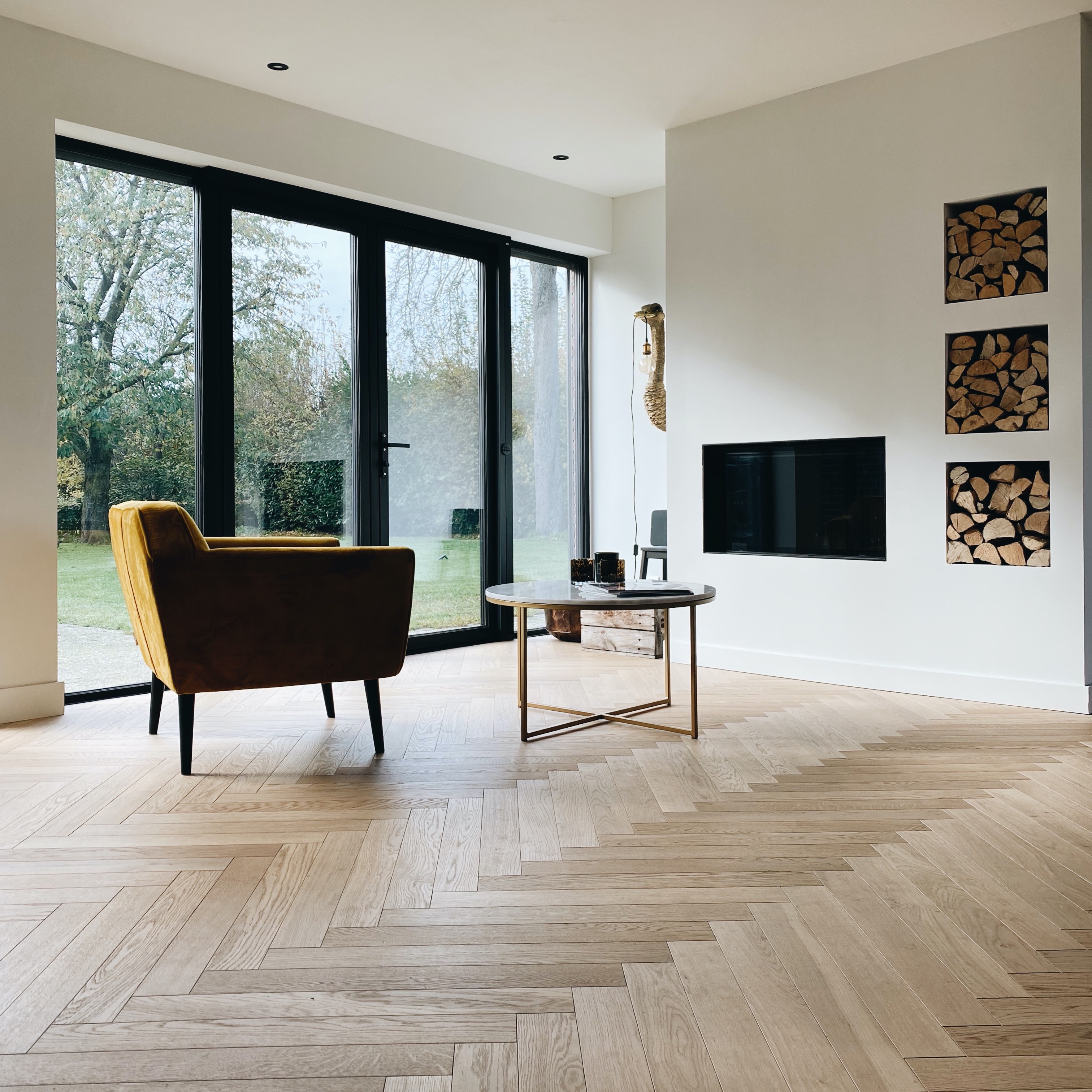 Worden het rustieke brede of klassieke smalle planken? Ga je voor onbehandeld hout, een white wash beschermlaag of een visgraatvloer met een natuurlijke olie- of lakafwerking? Bij Visgraatshop vind je werkelijk alle soorten en maten visgraatvloeren. Zo bepaal je helemaal zelf hoe je vloer er uiteindelijk uitziet.