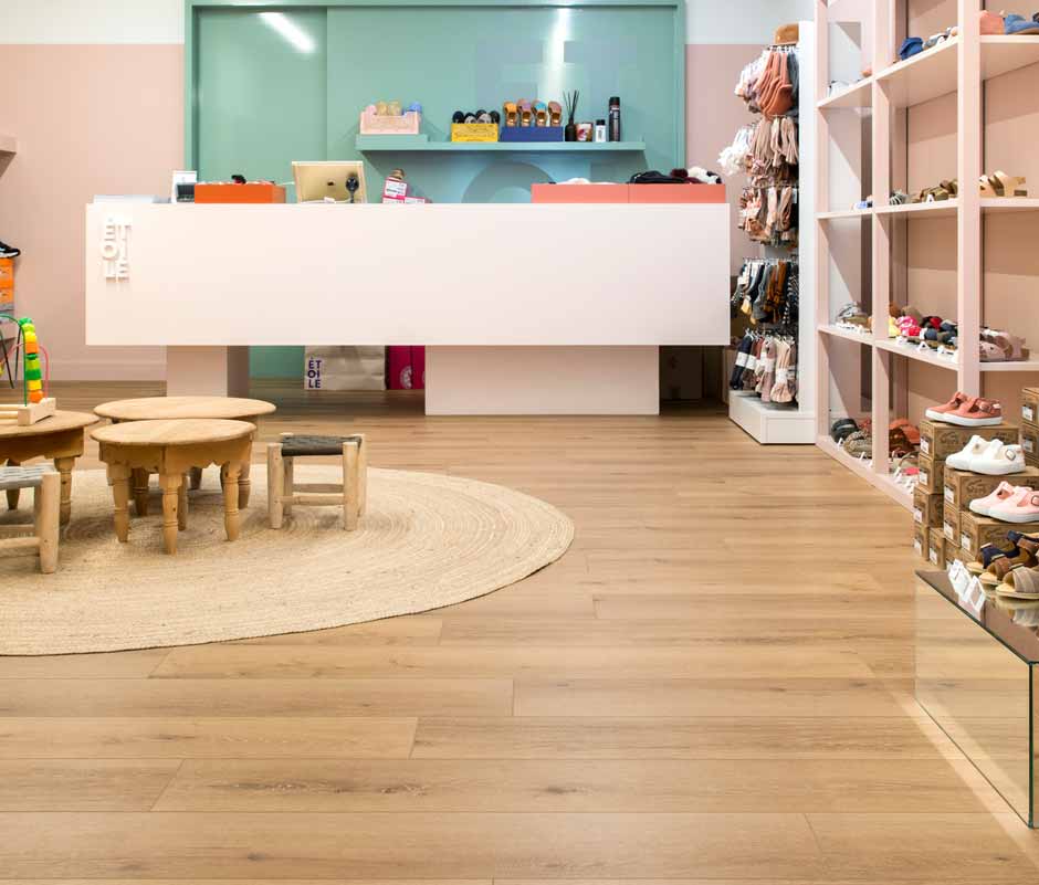 Onder het vast tapijt lag nog een oude tegelvloer die afbreuk deed aan de stijl van de winkel volgens Anathé. “Die vloer paste echt niet bij ons concept. Vandaar dat we een aantal jaren geleden dan ook voor een tapijt kozen. Onze nieuwe vloer moest passen bij ons concept én moest kwalitatief, duurzaam en mooi zijn. Aan die eigenschappen voldoet onze vloer van COREtec® helemaal!”