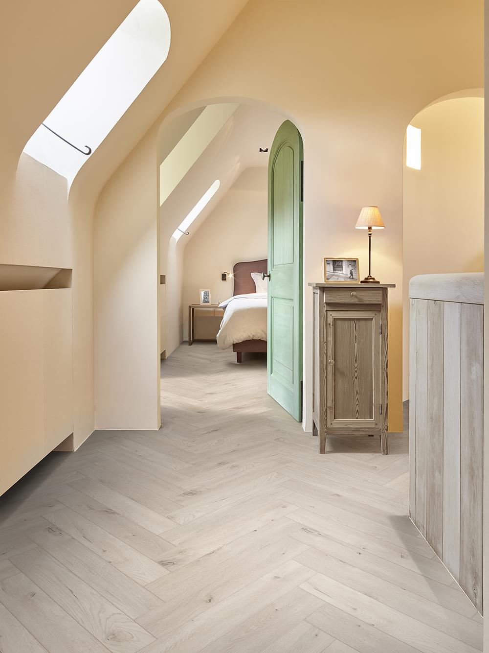 Geometrische vormen blijven populair in 2019. Op DOMOTEX en BAU, stelt COREtec® trots 8 designs van de Naturals Collection voor in een verfrissend visgraatmotief. De moderne visgraat klikvloer is beschikbaar in verschillende natuurlijke tinten met gekleurde v-groef en biedt een opmerkelijke dimensionele stabiliteit. Dankzij het gebruiksvriendelijke A & B kliksysteem, zijn de planken bovendien uitermate eenvoudig in installatie.