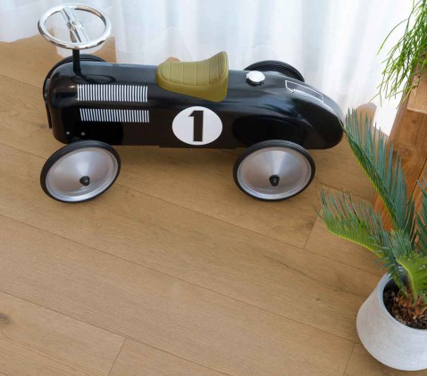 Nog een feit waarom COREtec® zo goed is, is het feit dat je de vloer over de bestaande vloer kan laten leggen door de onderlaag van kurk. Oneffenheden van de bestaande vloer trekken op die manier recht. COREtec® is door de slijtlaag én door een unieke structuur ook nog eens heel geluidsdempend. En daarbij is het niet alleen lief voor je buren, ook voor jezelf. Niets zo vervelend als een echo of galm in je huis.