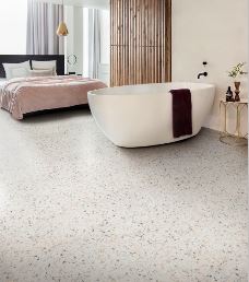 Wie aan Terrazzo denkt, denkt aan Italië, waar deze look zijn oorsprong kent. Onze Verona F023 – de eyecatcher in jouw interieur… kan het nog hipper? Deze speelse vloer past helemaal bij de Terrazzo-trend van nu en blaast iedere kamer leven in. Het gespikkelde patroon zorgt er bovendien ook voor dat je vuil veel minder snel ziet op jouw vloer. Door de natuurlijke pastel kleurnuance in de Terrazzo tegels, is Verona nauwelijks van een echte terrazzo vloer te onderscheiden en is het de ‘perfect match’ met hout en zoveel meer andere materialen.
