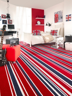 De Funky Stripes-collectie van Balta Broadloom pakt uit met drie nieuwe stralende kleurcombinaties, waaronder een patroon dat geïnspireerd is op de Engelse vlag.