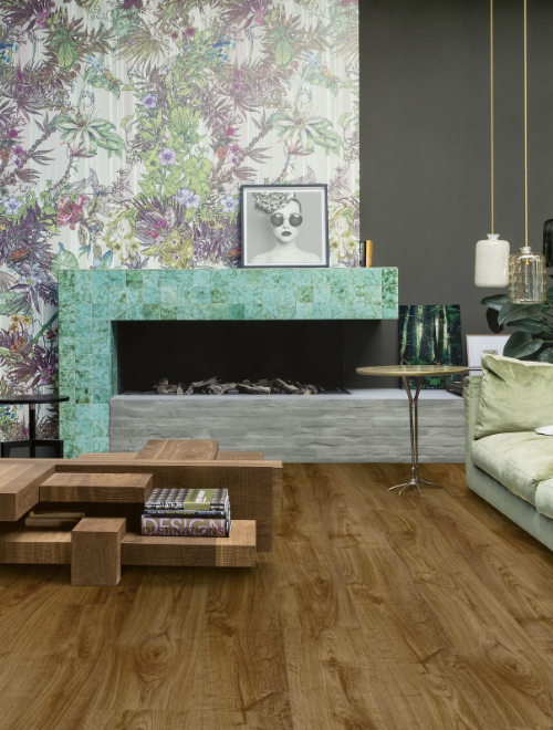 Hetzelfde geldt voor de donkere houtdecors uit de Bloom-vinylcollectie, zoals de botanische karamel eik of een herfstbruine eik. Deze sluiten naadloos aan bij het warme kleurpalet van rijke aardetinten, met designobjecten als blikvangers. En voor wie de voorkeur geeft aan een meer serene, minimalistische interpretatie van maximalisme, zijn de vinyltegels de Illume-collectie een aanrader. Naast de meer neutrale betondesigns bevat deze collectie ook een karaktervolle vloer met terrazzo-look.