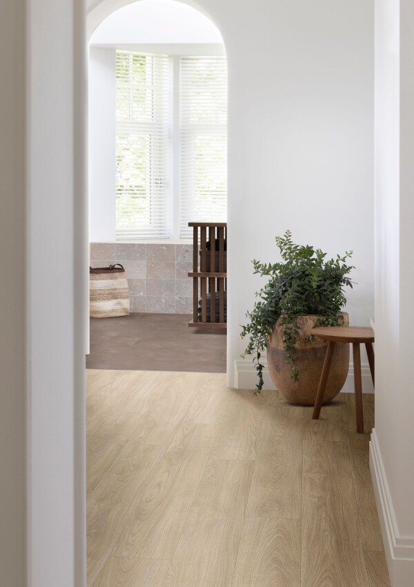 Toch blijft het een uitdaging om sfeer en functie binnen één grote ruimte in balans te brengen. Moduleo introduceert een stijlvolle manier om woonruimtes visueel van elkaar te onderscheiden door middel van zoning. Dankzij de mogelijkheid om twee verschillende vloerpatronen te combineren binnen één ruimte, ontstaat een subtiel maar krachtig effect waarmee bijvoorbeeld woon- en eetgedeeltes duidelijk herkenbaar blijven, zonder wanden of hoogteverschillen. Deze vorm van vloer zoning geeft interieurs structuur en balans, terwijl de openheid van de ruimte behouden blijft.