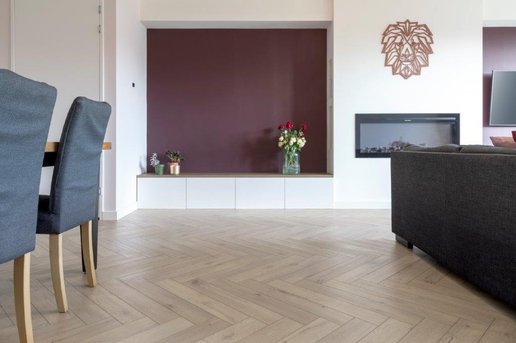 We waren op zoek naar een authentieke vloer omdat we dergelijke vloeren erg mooi vinden voor onze woning en we hadden een voorkeur voor een visgraat vloer. We wilden een vloer waar we lang genot van zouden hebben. Maar we hebben 2 kinderen, dus hadden we onze bedenkingen over het onderhoud van een houten vloer. Tijdens onze zoektocht hebben we ons gefocused op hout en hout imitaties, waarbij we natuurlijk ook rekening hebben gehouden met het kostenplaatje.