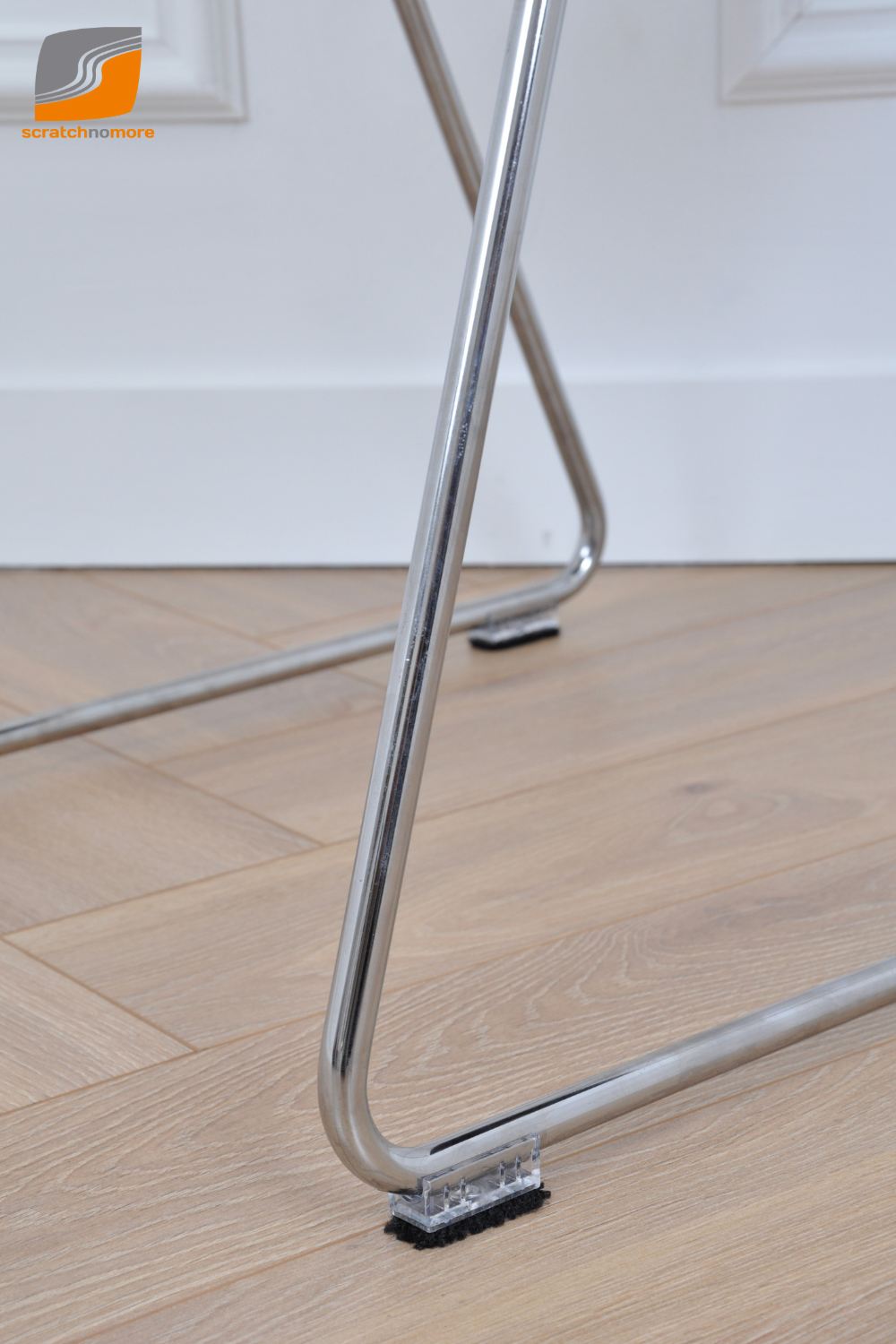 De ideale vloerbeschermer stoelen met een rond buisframe. Bescherm je vloer tegen schuivend meubilair met beschermdoppen van Scratch no More.