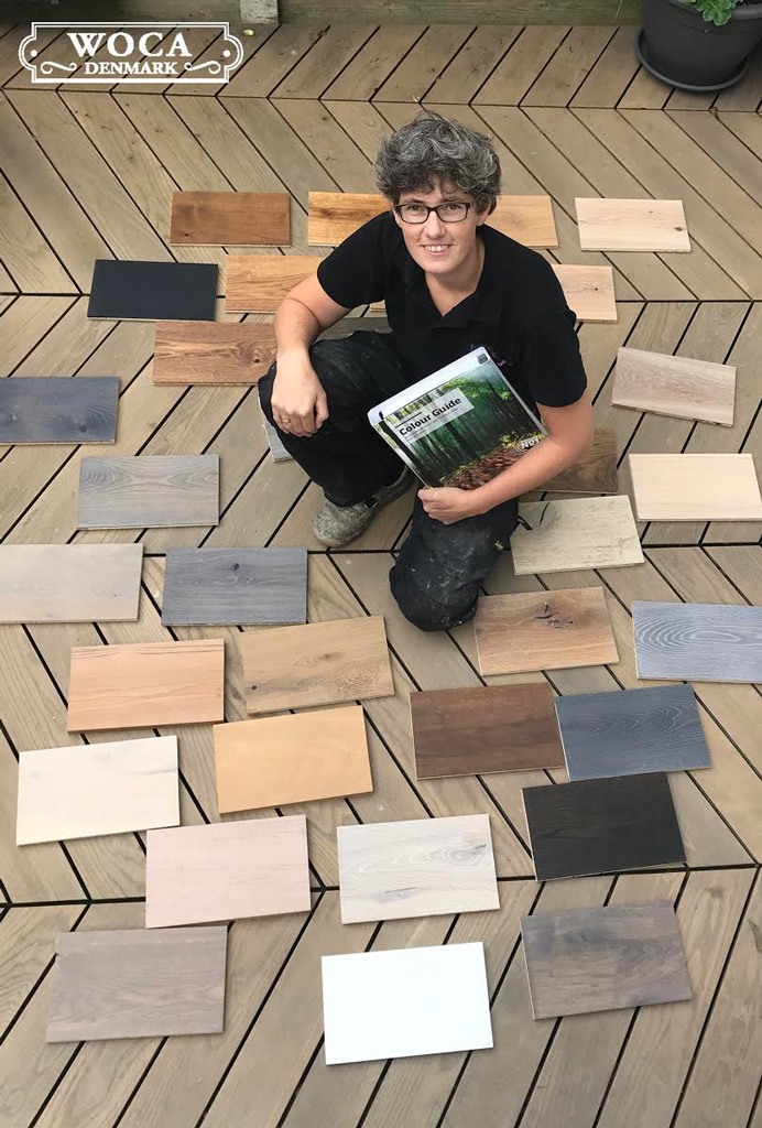 Saar wilde na het zien van de kleurenstalen van de WOCA Diamond Oil op de Interieur Collectie Dagen dolgraag eigen monsters hebben. Dit om haar klanten te laten zien wat de mogelijkheden van WOCA zijn. Saar gaf aan: “Als ik volle natuurlijke kleuren wil, kies ik voor WOCA.” Daarom heeft het WOCA-team, als prijs voor haar NK-titel, Saar kleinere handmonsters van de gebruikte kleurenstalen en de WOCA Colour Guide gegeven.
