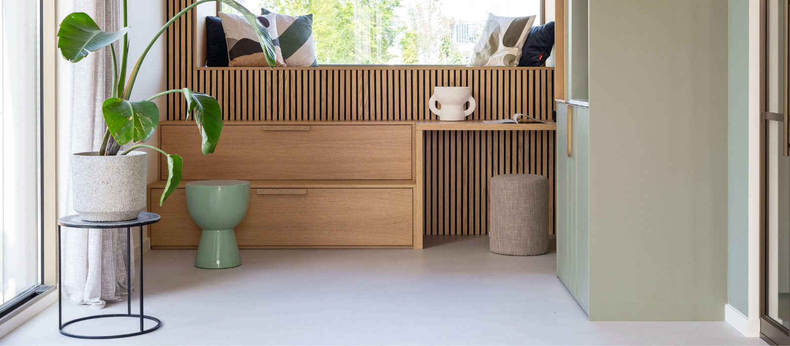 Een naadloos design met de Motion Concrete Quartz in deze woning in Amsterdam.