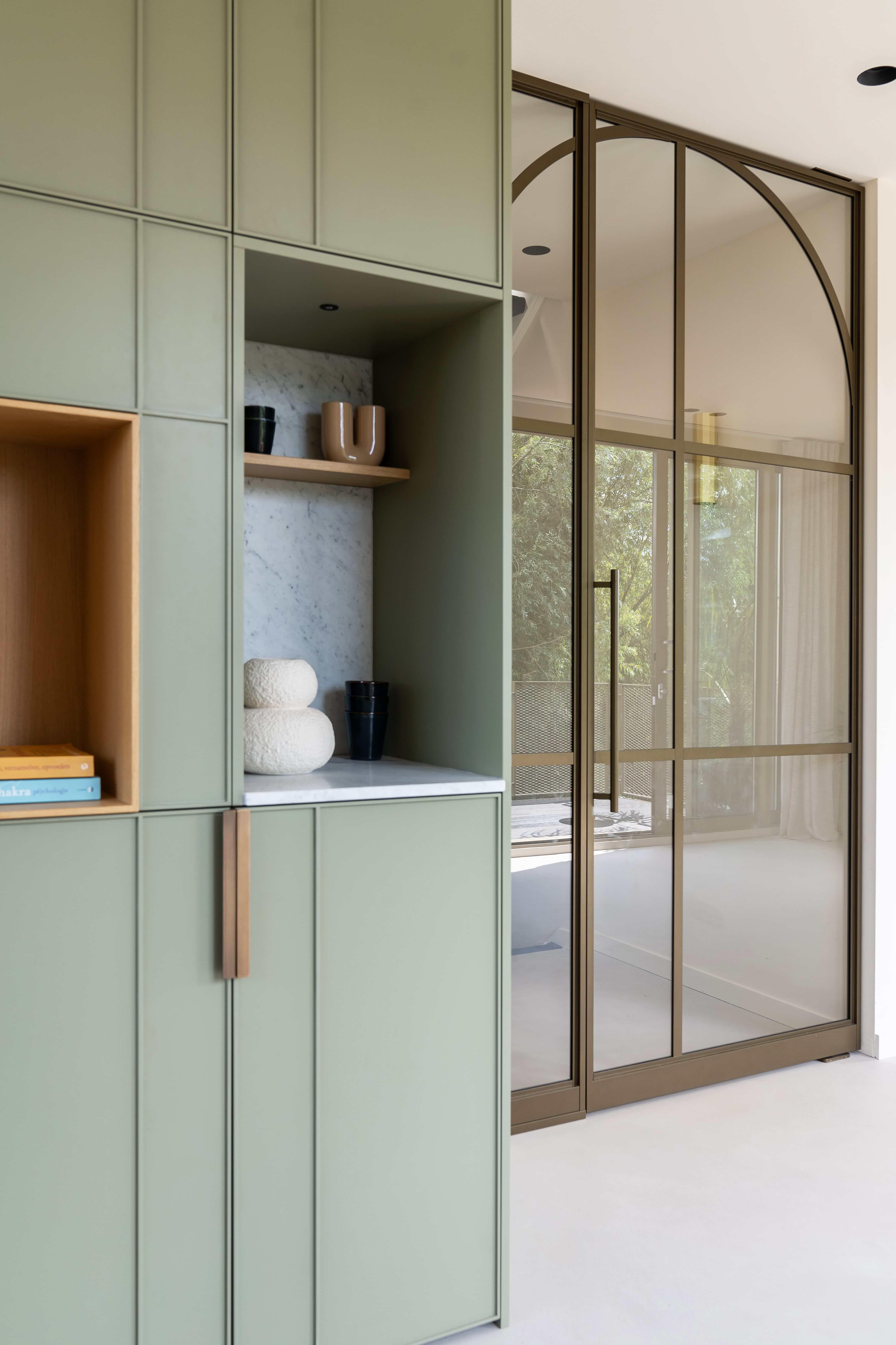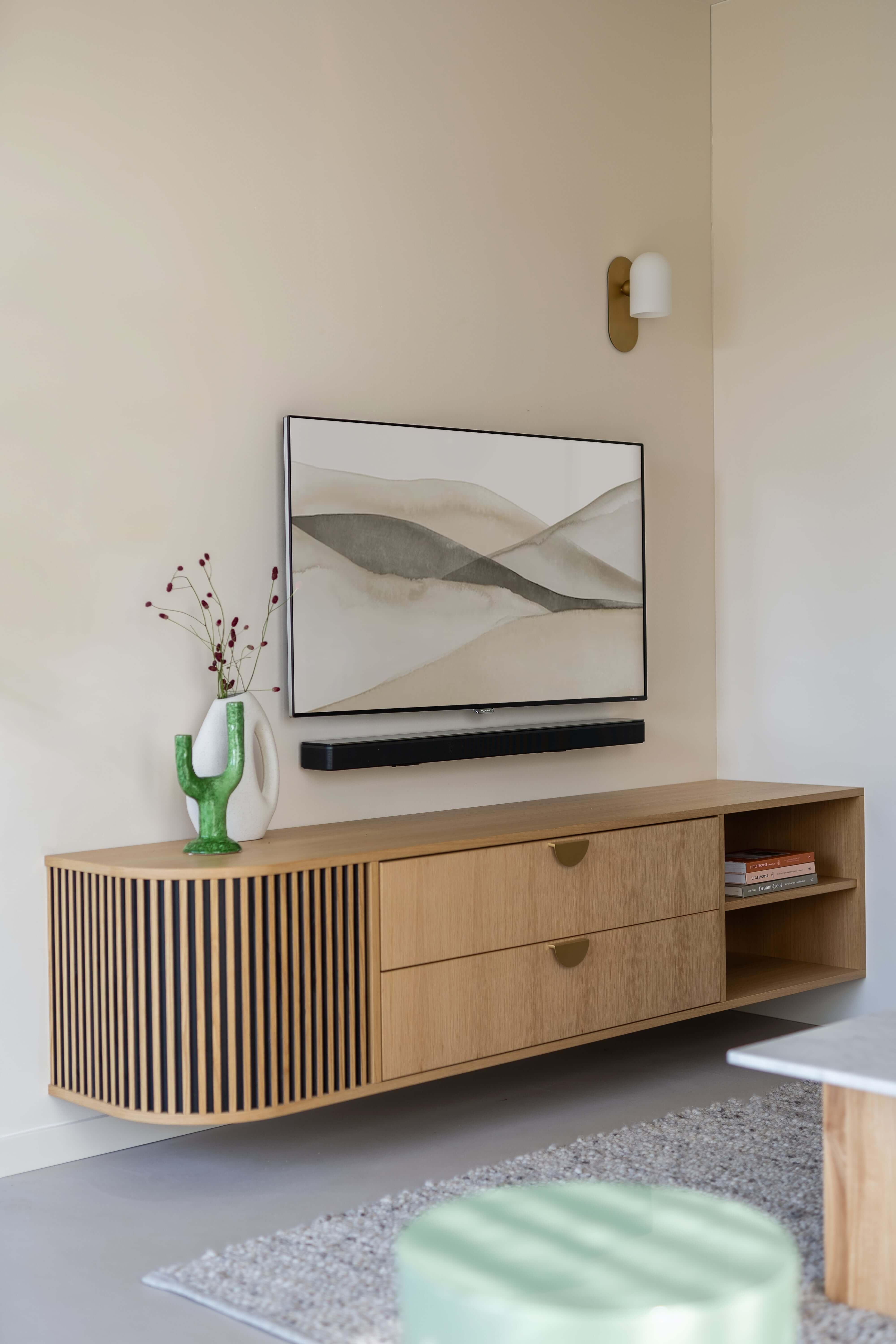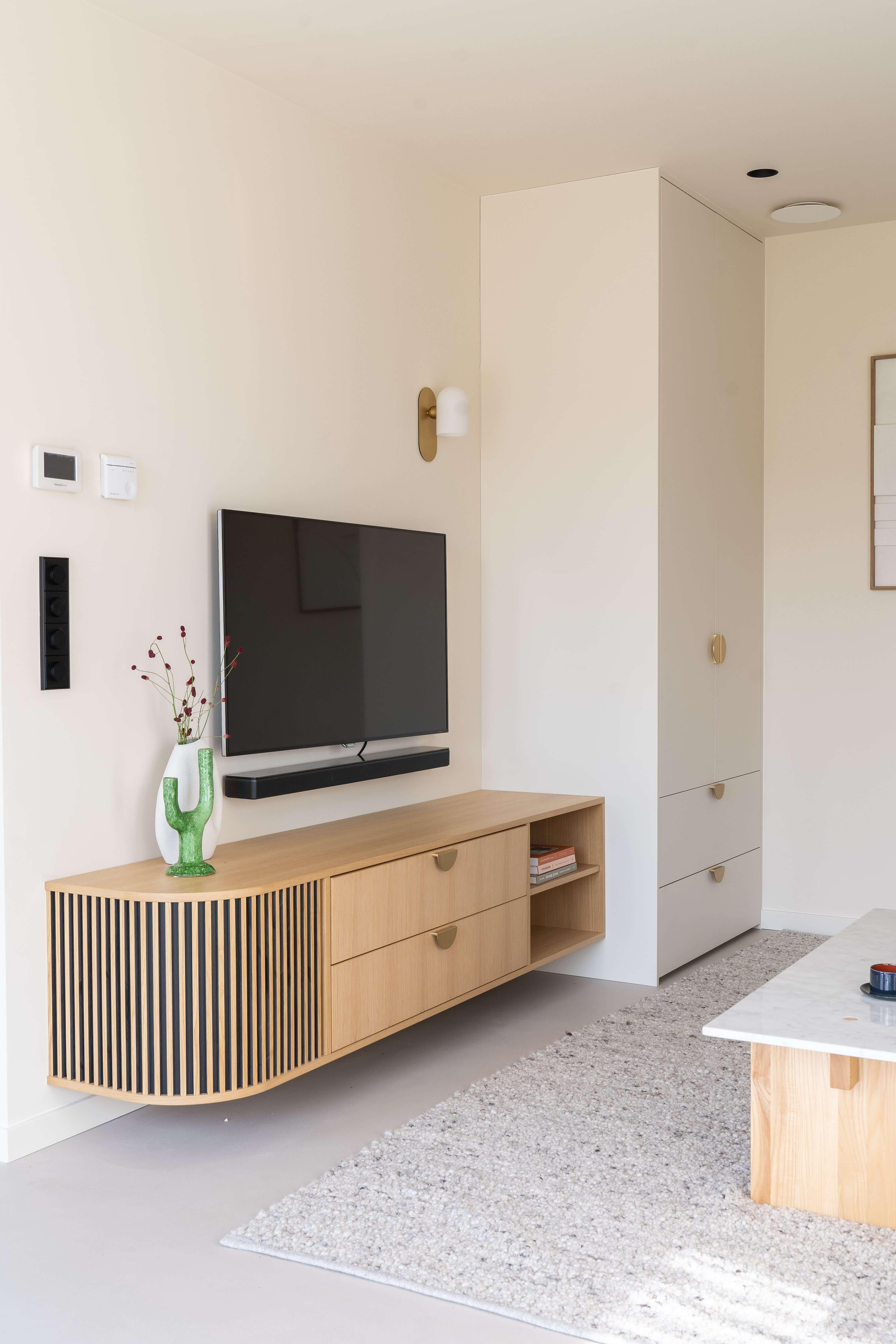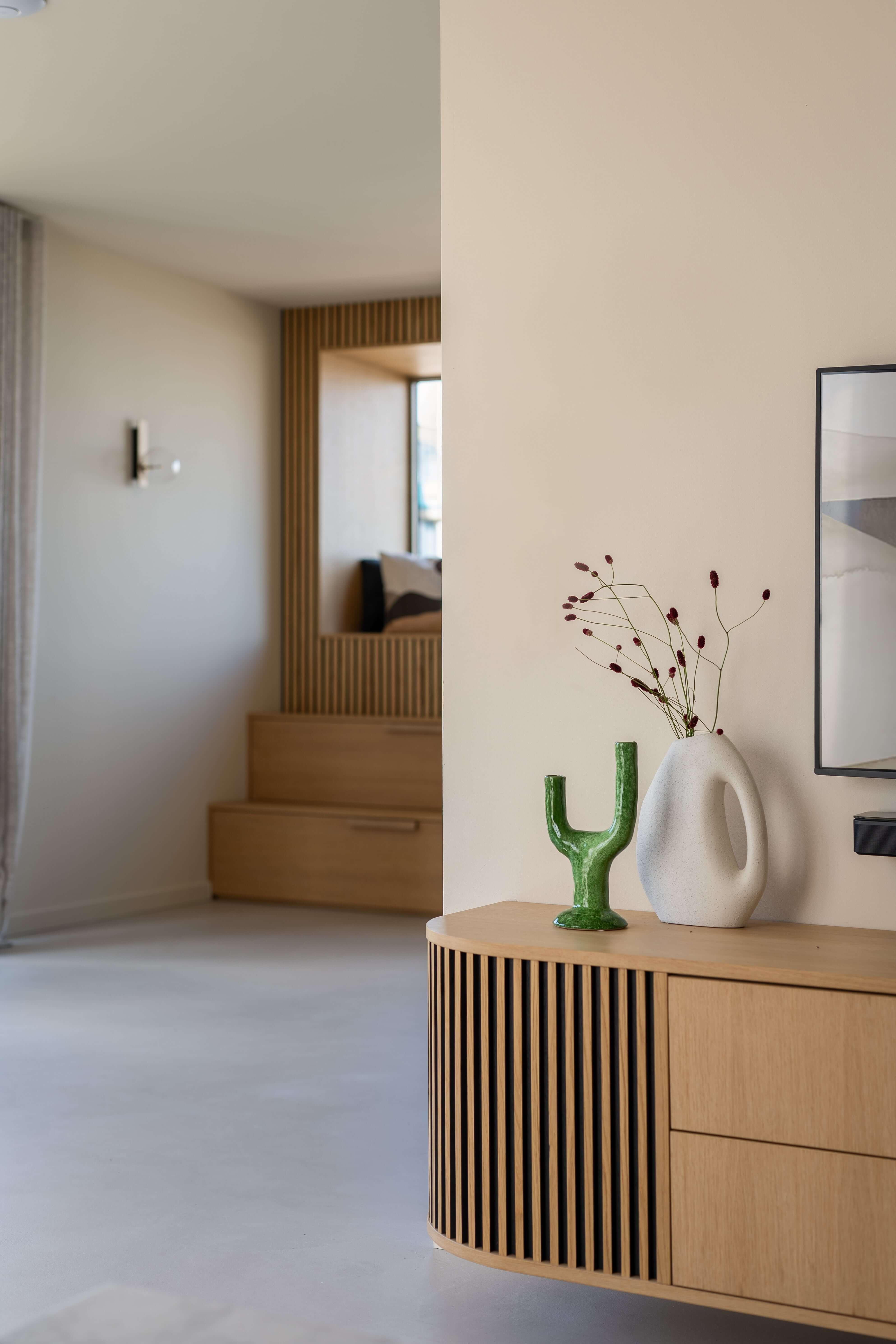 De prachtige watervilla met een vloer van microcement is een ware eyecatcher, waarin maatwerk tot in de kleinste details is toegepast. Interieurarchitecte Mera Arendse van Eyemhome heeft met haar expertise een adembenemende leefruimte gecreëerd, gekenmerkt door een rustige sfeer en een functionele inrichting.