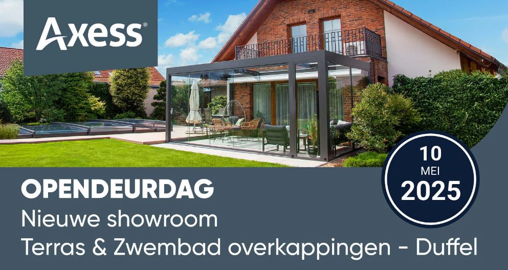 Axess Europe, expert in zwembadoverkappingen en terrasoverkappingen, nodigt klanten, partners en geïnteresseerden uit om de opening van hun gloednieuwe showroom te vieren tijdens een Open Deurdag op zaterdag 10 mei 2025.