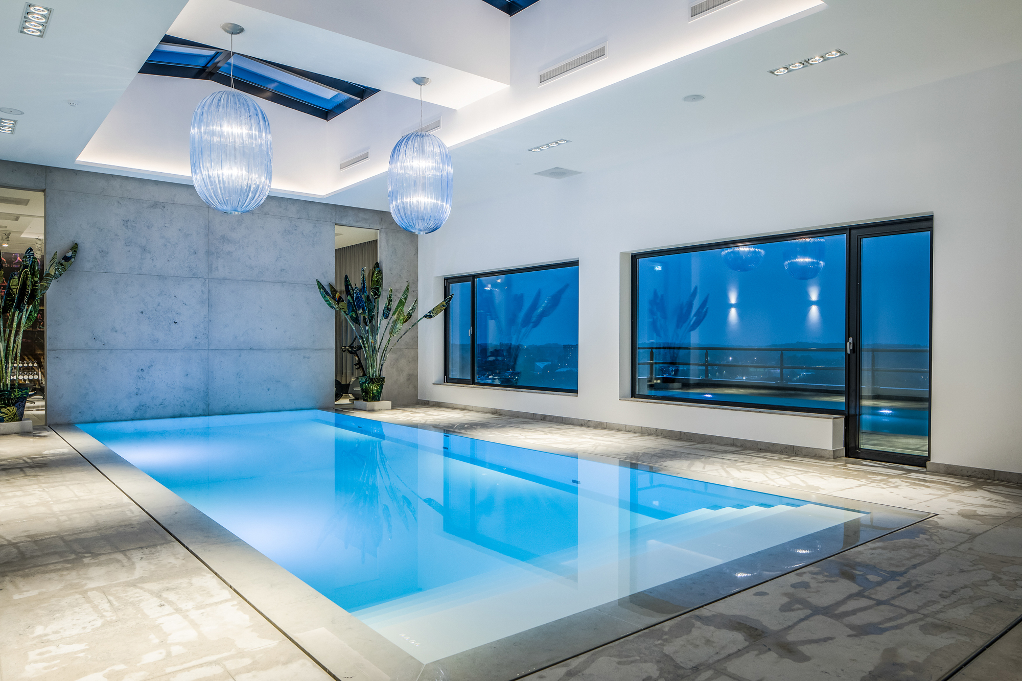 Deze zwembadlijn bestaat uit drie formaten zwembaden en zijn uitvoerbaar met diverse adembenemende designtrappen voor een comfortabel betreden van het zwembad. Het strakke design, de waterlijn tot de randstenen en het prachtige spiegeleffect zorgen voor een exclusieve uitstraling. In het allergrootste zwembad uit deze lijn kunt u royaal zwemmen. Dit bad is maar liefst 12 meter lang!