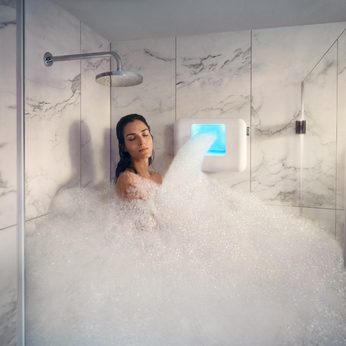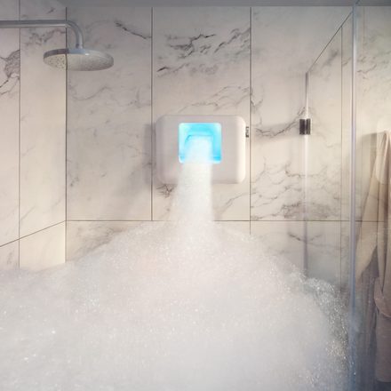 Binnen enkele seconden vult de ESPURO® CloudSPA de douche of het bad met een zee van zacht schuim - tot wel 400 liter per minuut. De luchtige, wolkzachte schuimlagen die zich als een tedere cocon om het lichaam vormen, versmelten met sfeervolle LED-verlichting en een subtiele geur tot een multisensorische beleving. Afhankelijk van de behoefte warm en omhullend, verfrissend en vitaliserend of subtiel mysterieus knisperend - het schuim geeft een gevoel van geborgenheid, diepe ontspanning en speels plezier. Het roept herinneringen op aan zorgeloze kinderdagen en creëert tegelijkertijd ruimte voor meditatieve momenten vol rust en aandacht.