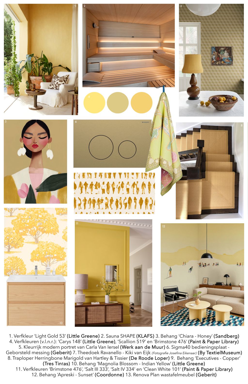 Geel werkt als zonlicht binnenshuis: subtiel aanwezig, altijd sfeerverhogend, maar nooit overheersend. Van zacht (butter) yellow tot krachtiger tinten, geel combineert moeiteloos met natuurlijke materialen, laat goudaccenten extra stralen en geeft zelfs wellnessruimtes en sauna’s een warme, bijna magische sfeer. Niet schreeuwerig, wel uitgesproken, en precies daarom blijft deze kleur ons ook dit seizoen betoveren.