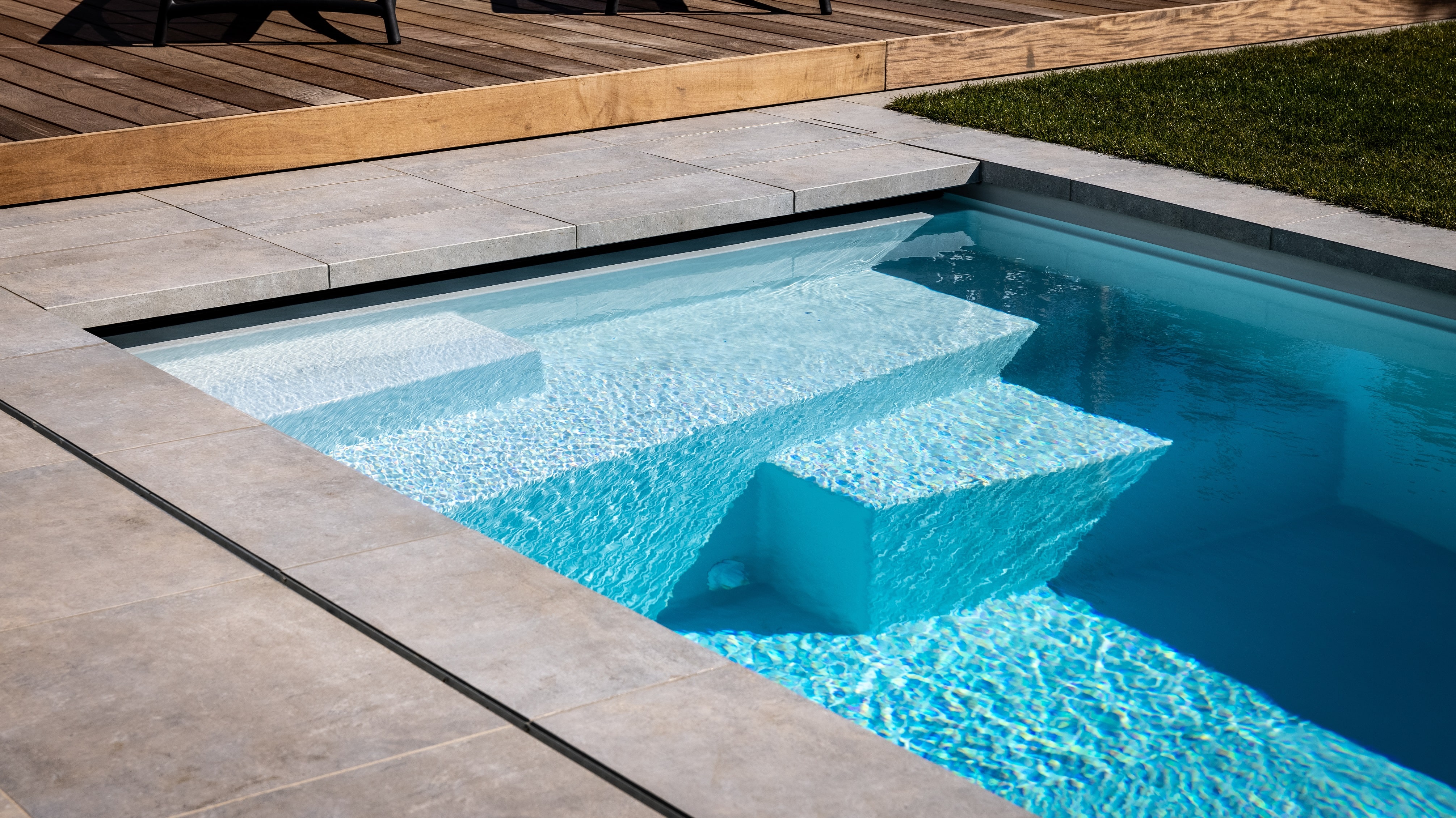 Een inlooptrap is meer dan een functioneel element in uw zwembad, het is ook een belangrijk esthetisch aspect die invloed heeft op de gehele uitstraling.