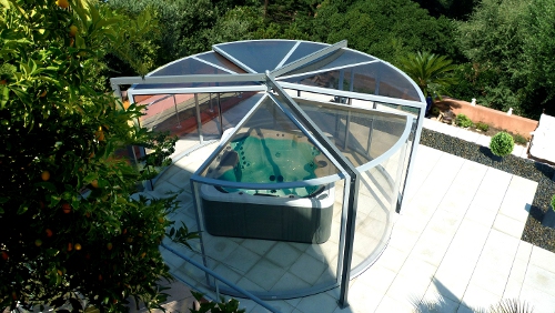 Naar oorspronkelijk idee is de Abri Spa ontworpen als tailor made overdekking voor hot tubs en buitenspa’s. Franse producent Abrisud beschermt hiermee de buitenspa tegen weersomstandigheden en ongewenste bladeren en insecten. De energiebesparende overdekking zorgt ervoor dat de watertemperatuur gemiddeld 6 tot 8 graden warmer blijft. Naast het binnenhouden van warmte biedt de Abri Spa de mogelijkheid alle delen apart van elkaar te verschuiven en open te zetten om zo naar wens frisse lucht, een koele bries of zelfs een koude contrasterende temperatuur te creëren. De Abri Spa wordt op maat gemaakt. Zo past er op ieder terras een overdekking voor de buitenspa, zelfs in hartje centrum op het dakterras!
