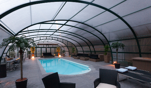 Loungen, lunchen en relaxen aan de rand van je eigen zwembad. Met de fraaie rond gebogen overkappingen van Abrisud is een mooie wellness ruimte te creëren. Zowel vrijstaand in de tuin als vastgebouwd aan de woning. De innoverende overkappingen van Abrisud worden geheel op maat gemaakt, aangepast aan de situatie ter plekke. Aangekleed met palmen, comfortabele stoelen, loungebanken en een rustgevend muziekje wordt ontstressen meer dan aangenaam.