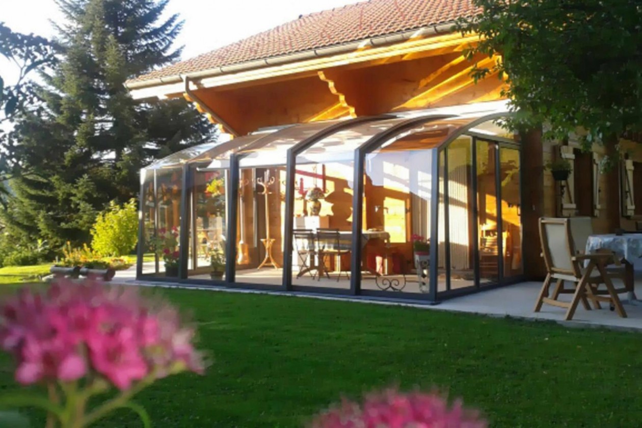 Handmatig laat zich bij de Rondogard elke glasschijf apart aan de voorkant onder het dak schuiven of de dak-glasschijf naar beneden schuiven.