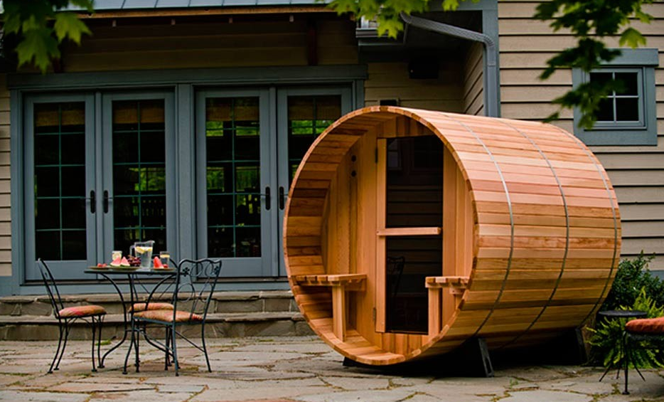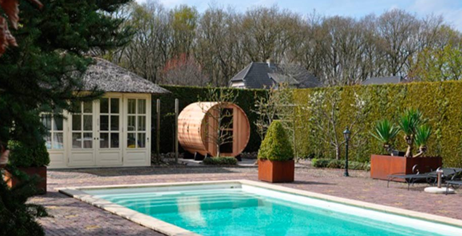 Houten Barrel sauna voor buiten.