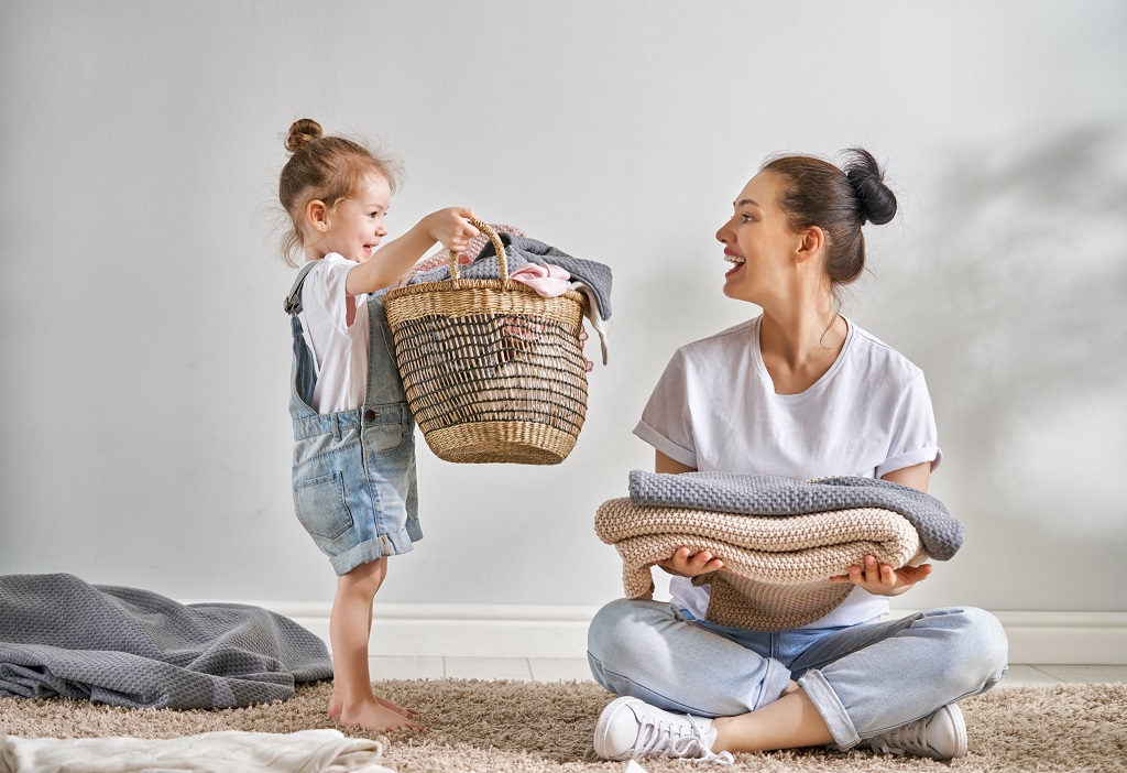 Huidvriendelijk en ecologisch verantwoord wassen, hoe doe je dat? Met Klok waspoeders natuurlijk. Een kind doet de was.