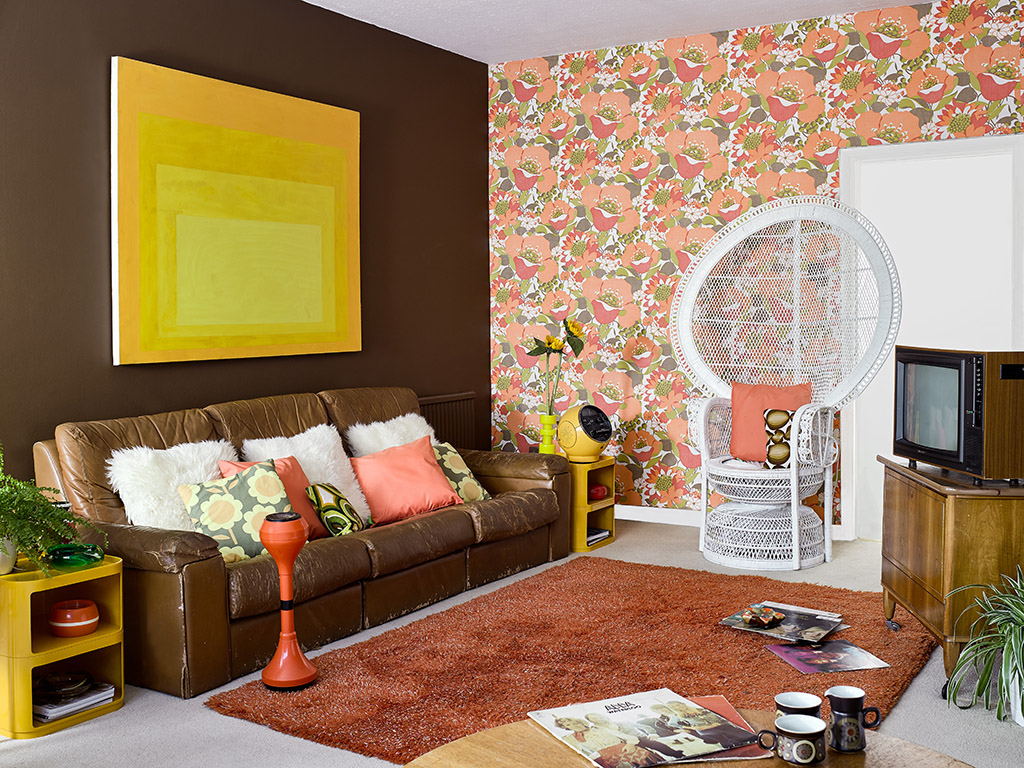 Vanaf de jaren 1970 was het in de mode om stoelen en sofa's in een combinatie van stijlen en kleuren te hebben. Nieuwe materialen voor meubels, zoals glas, aluminium en kunststof, werden steeds populairder. Sinaasappel, avocado en citroengeel waren populaire kleuren voor de jaren 1970. Televisies en hi-fi systemen werden iconische design-meesterwerken om te pronken. In de meeste woonkamers werd meubilair vervangen door modernere en modulaire opbergsystemen die bestonden uit planken, ruimte voor tv, kasten en pull-down cocktailbars.