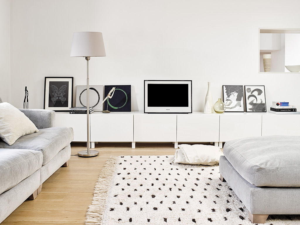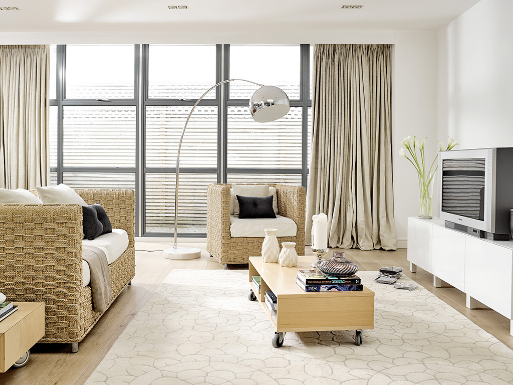 Paring back: na de hausse van de jaren tachtig stonden de jaren negentig in het teken van minimalisme. Op de foto, een kamer gevuld met typisch witte en beige meubels. Het ontwerp van de woonkamer werd schoner en minder druk dan in het vorige decennium.