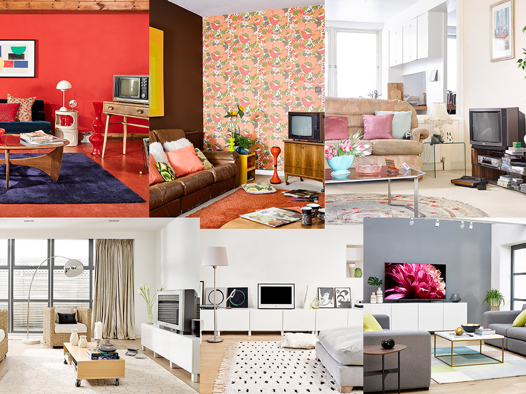 Van opvallende kleurenclashes uit de jaren '60 tot de strakke interieurs met slanke tv’s van vandaag
